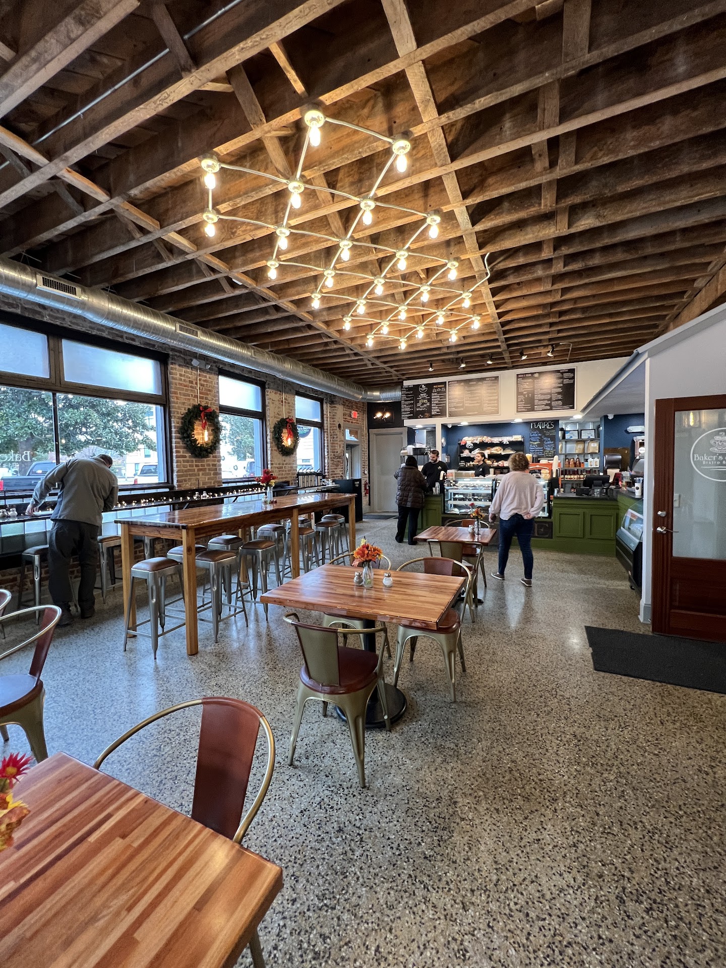 And my compliments to the owner, JENNIFER BAKER, for orchestrating a very quaint design of the interior which lends itself to a very ‘home-y’ feel!!! So excited that you made the floorboards a naturally rustic ceiling with the pointed addition of the lighting fixtures!!!