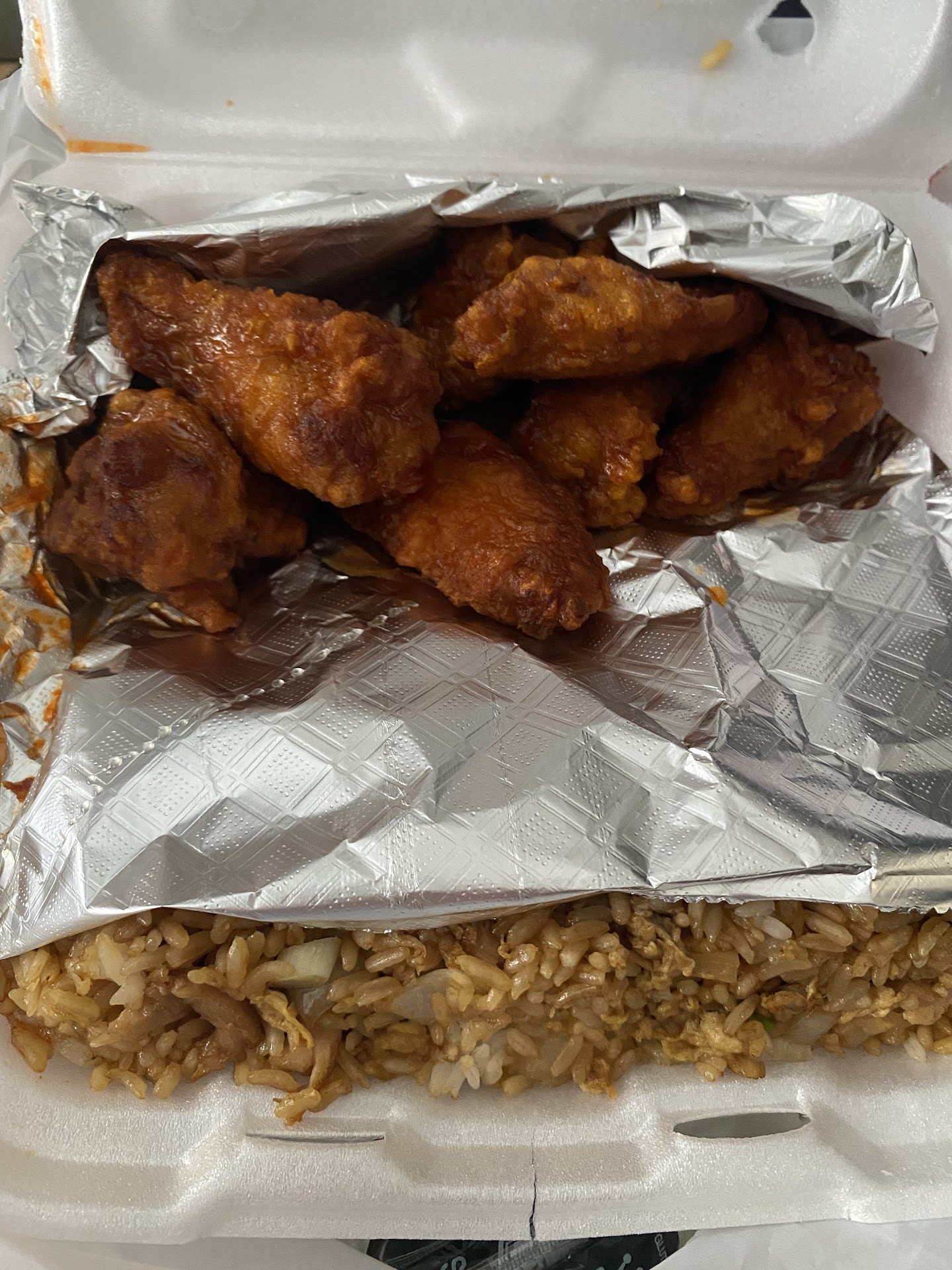 Tonight 9/18/21 I Ordered the 6Wings(Honey)and house fried rice With an extra 6Wings(Honey BBQ) And I was Highly Disappointed in the food that we got tonight! Our Rice Tasted Burnt and my husband's honey bbq wingz had No BBQ or Honey Taste at all! I'm upset that I'm still hungry and just wasted $20 on This So Called Food! The Picture That I took really don't show how dark our fried rice really was. This WAS NOT our 1st Time eating here! The Times before this the Food Was awesome. 😥 😥