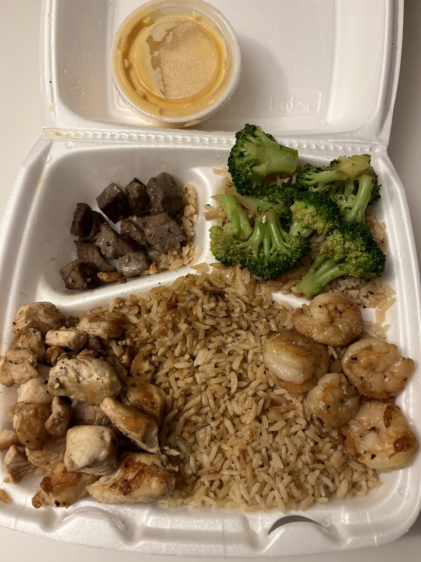 Ā Ā Ā Read moreI have visited several times eating in and ordering out. When the young lady is working the window, the orders taken and meals received seem more accurate. This is my observation of others customer interactions and reactions. It wasnāt until last Eve, a young man took my order. I had to repeat my order 4 times and when I received it, I barely had any vegetable portion. I simply ordered shrimp hibachi no carrots. I could count the broccoli on the rice. I asked for and paid in cash extra sauce. I didnāt feel confrontational. I am new to the area and just looking for a good hibachi restaurant to favor for...