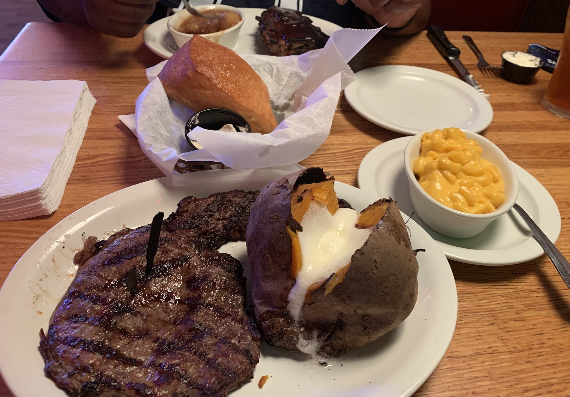 Ā Ā Ā Read moreFor context, Iāve already been told by multiple of my peers to avoid this place. But, I was invited here to have dinner with a few friends so I came in. For starts, the rolls came out, and when my friend asked for cinnamon butter, they said they were out, but they would bring us out a cup of cinnamon? They actually proceeded to bring out a whole to-go cup of cinnamon. Why they couldnāt have just mixed some into the butter beforehand is confusing. We also asked for more rolls, which never came. I ordered āThe Loganā an 11oz sirloin with a side Caesar salad and green beans. And let me just say, the plain green beans were the best part of my meal. This ā11ozā they gave me was small. Iāve had 8oz steaks at other restaurants that looked bigger than this. When I brought this up to my waitress, she pretty much said āwell I rang you up for an 11oz, so thatās what you got.ā And my Caesar salad was bland, and not good at all. The croutons were stale, the dressing was completely watered down and flavorless. The big chunks of Parmesan that they put on top was the only thing with any taste to it. So I didnāt even finish that. And the worst part is that I paid $30 for my own meal, for something so disappointing. This has to be the worst āsteakhouseā Iāve been to. Seriously, Iāll continue to make the 40 minute drive to Texas Roadhouse in Florence until they decide to...