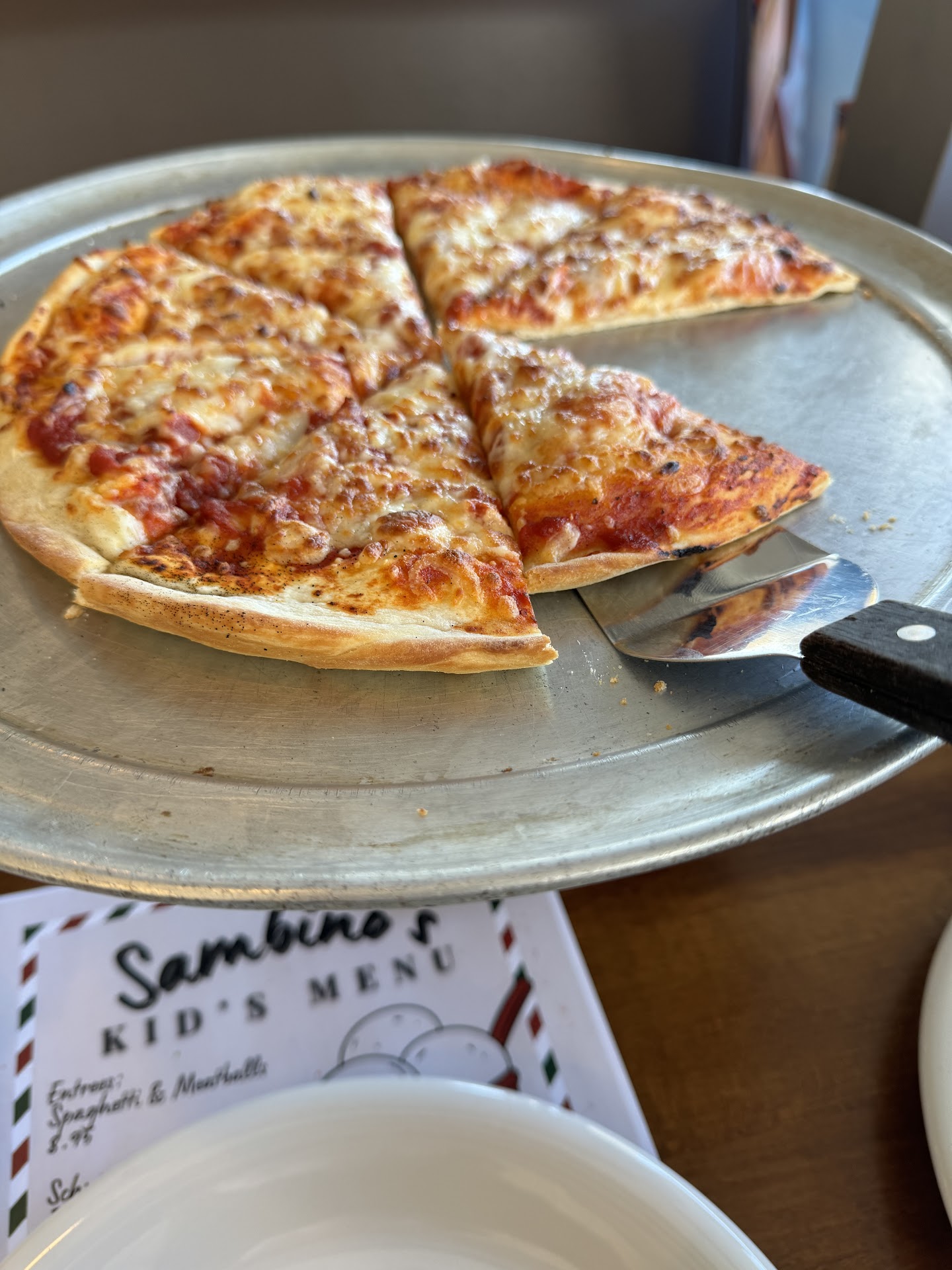 Looked online for their menu, and saw an ordering option - easy enough, took just a couple of minute to order the entree, salad, and pay via credit card. Even gave a 15% tip for a pick-up order - generous, I thought. So, went to pick it up after 20 minutes or so, and a pleasant young man retrieved it from the kitchen and handed it to me. I saw two containers, so I naively assumed the one on top was my salad. Got home ~20 minutes later & saw that it was not my salad, but rolls. Really aggravating because I was looking forward to a Greek salad. Started eating, but got more aggravated, so I called, and the pleasant young man answered. He was apologetic, and offered to have one made for me to pick up. I told him that I was not really inclined to drive 10 miles for a salad, and he began talking options, including speaking to the manager. I said, and I quote, "O.K. Whatever." Then - click, call ended. I thought, surely he didn't hang up, must have been some problem. Called back, and a young lady answered. After asking a few questions, she affirmed that the pleasant young man had hung up on me. That set me off, and I would up speaking with the assistant manager, another pleasant young lady. After expressing my extreme displeasure with being hung up on, and some discussion of options, I told her that in any case, I wanted the 15% tip removed from the charge. She assented, and after more discussion of crediting me for a salad, even though the entrees come with a salad, we ended our call. A short time later, she called back, and said that there was no way they could remove the charge and I would have to call the company that handles their payments. Non-starter. I will seriously consider bypassing Sambino's, certainly for carry-out in the future after this folderol. My rating is for the service; food quality is always good, if you...