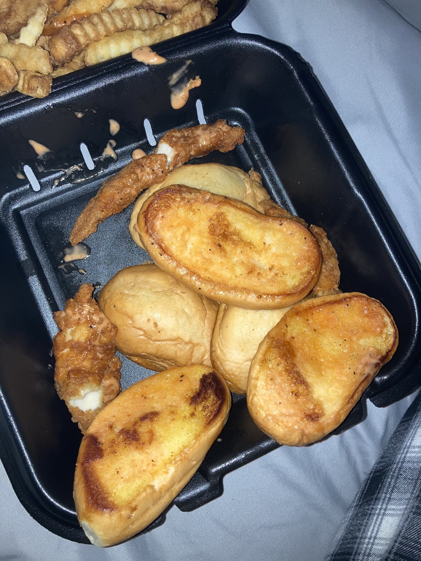 Ordered nibblerz meal with no Zax sauce and extra fries as it hurts my stomach, all of them drowning in the sauce. Pictured is after I scraped it all off. Did not have extra fries in the container, I was given some from my boyfriends meal. Ordered a boneless wings and things and received bone in wings. The receipt had everything correct but none of the order was. Edit: Ordered boneless wings and things and only received the wings but was charged for the wings and things meal