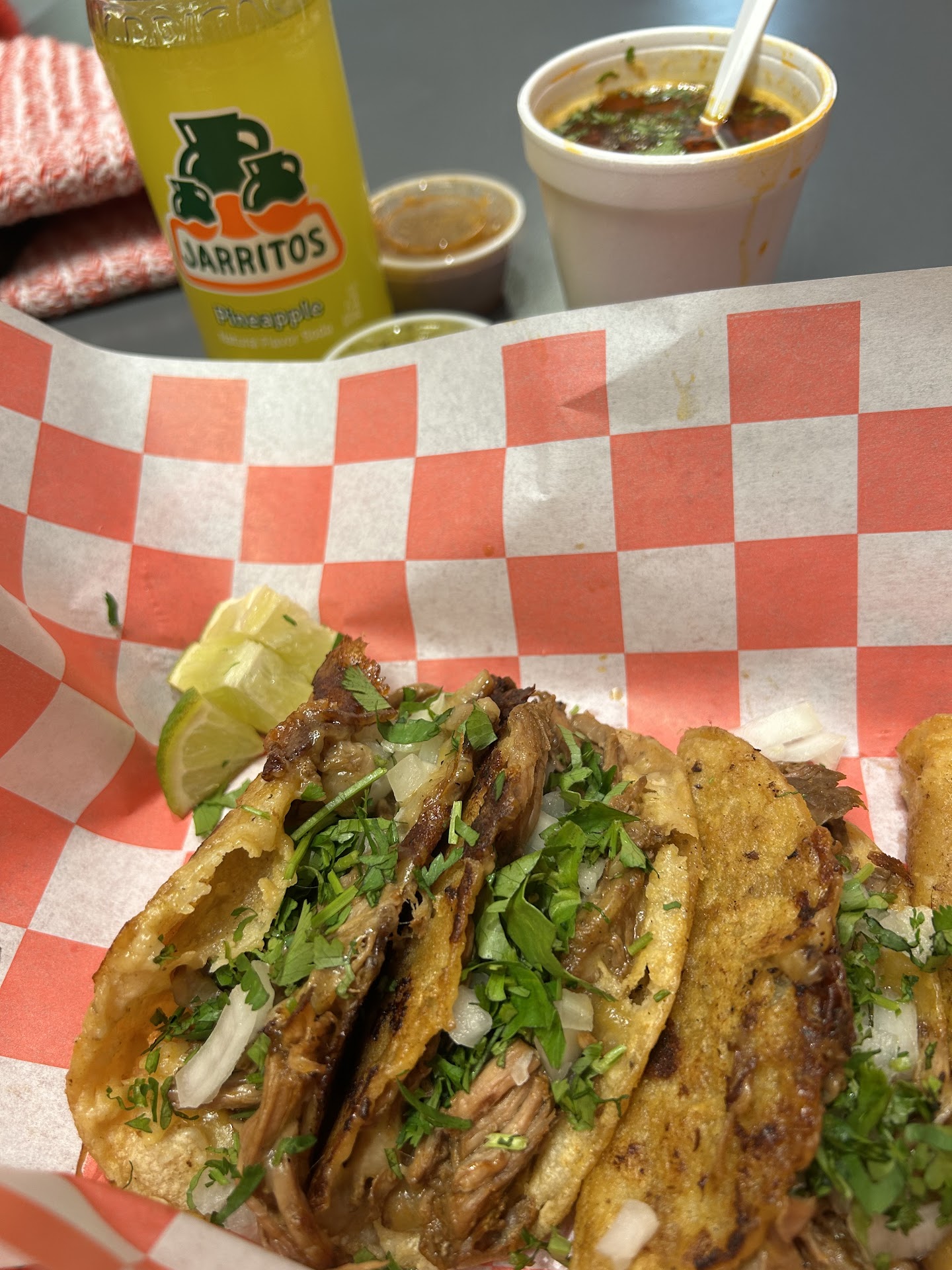 Read moreFood was horrible. I would not recommend. Order corn for my daughter and kernels were dark brown bruised and did not taste fresh. You can visually see and tell corn was either leftover and old. Steak tacos was bad, was there not a single effort made into this? The meat was tasteless! Looked broiled on a pan and season with salt and black pepper. Birria tacos... the juice and red pepper was sooooo watered down. Yes the meat was tender but again it was tasteless. Food is bland, choppy and poorly made. I regret wasting my money here. Please season your meat. Also ordered a steak burrito yet to be tried, but we have no hope for their food at this point. Will never go back and is the worst...