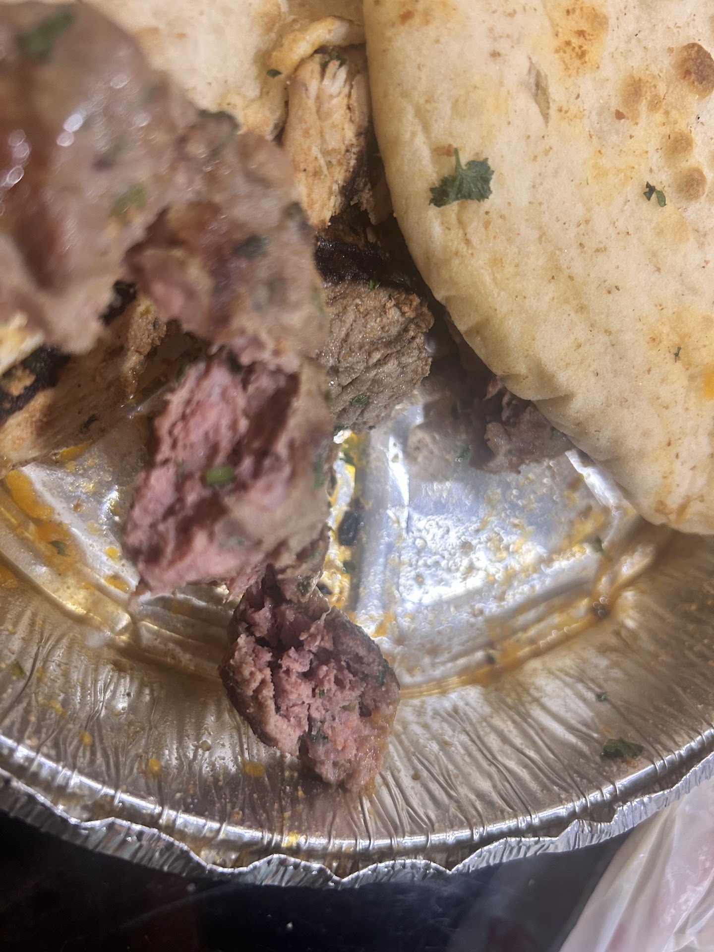 When we received our order, there were no utensils included. My husband went back inside to get some for us. We then continued on our drive, as we were heading home. While on the road, I began eating and quickly realized that the kebab in my Ottoman Platter seemed undercooked. Even though we were already about 15 minutes away, I decided to turn back.