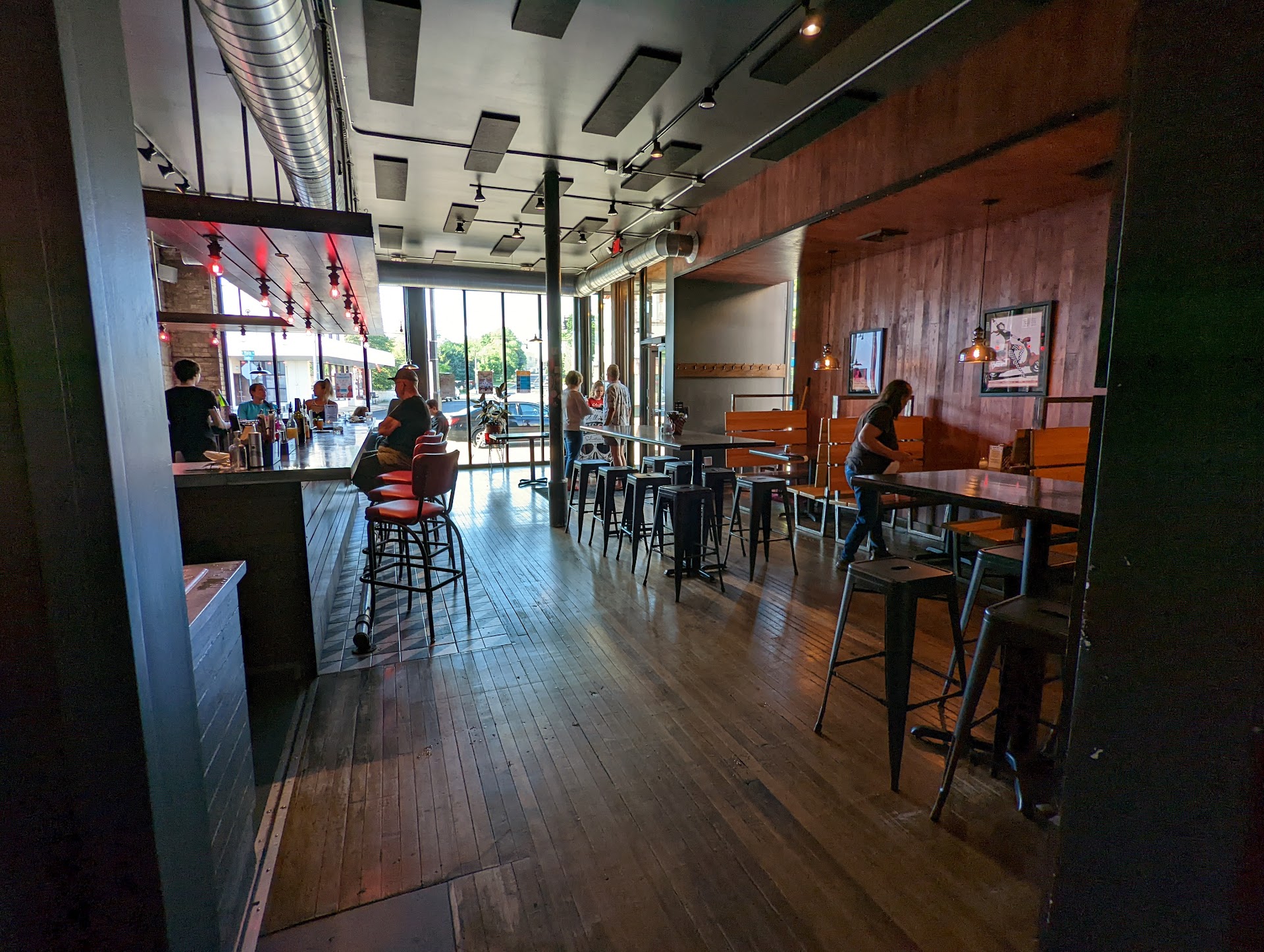 This was our first time visiting this new location. I guess they moved locations a little over a year ago. We live about 30 mins away, but we have never forgotten about the amazing pizza we had long ago. Last visit was so amazing, it left us with such a wonderful impression we made it a point to come back. I wish we had come sooner! When entering the place it has a modern hipster feel. The place is a bit loud when full, but that didn't stop us from having a good time. We were immediately greeted with hellos and seated by a smiling hostess. Within minutes we had waters and our drink order was taken. They had several great craft beers to choose from if you are a beer drinker, otherwise signature cocktails, wine or a full bar for selecting from. This was during busy dinner time and with a buzzing full restaurant. We asked a few questions, which the waitress was happy to answer for us. We were now ready to order! We went with a specialty style 1/2 and 1/2 pizza so we could try some different options. The Woodsman was an amazing Mushroom pizza with awesome fresh taste on one half and the other half was called the Forza! This had Gouda cheese, garlic, tomatoes, goat cheese, uncured pepperoni and so much more. This establishment probably cooks one of the best pizzas we have ever had in the state of Wisconsin. It is that good. The crust is perfect! My wife and I both said next time we would try the Fat Uncle Tony's meatlover's pizza. We wish they served a Margarita pizza with a white sauce.... Prices were reasonable.... the place was clean, service was freindly, food came out fast, and best of all was fresh. What more can you ask for! Great job...