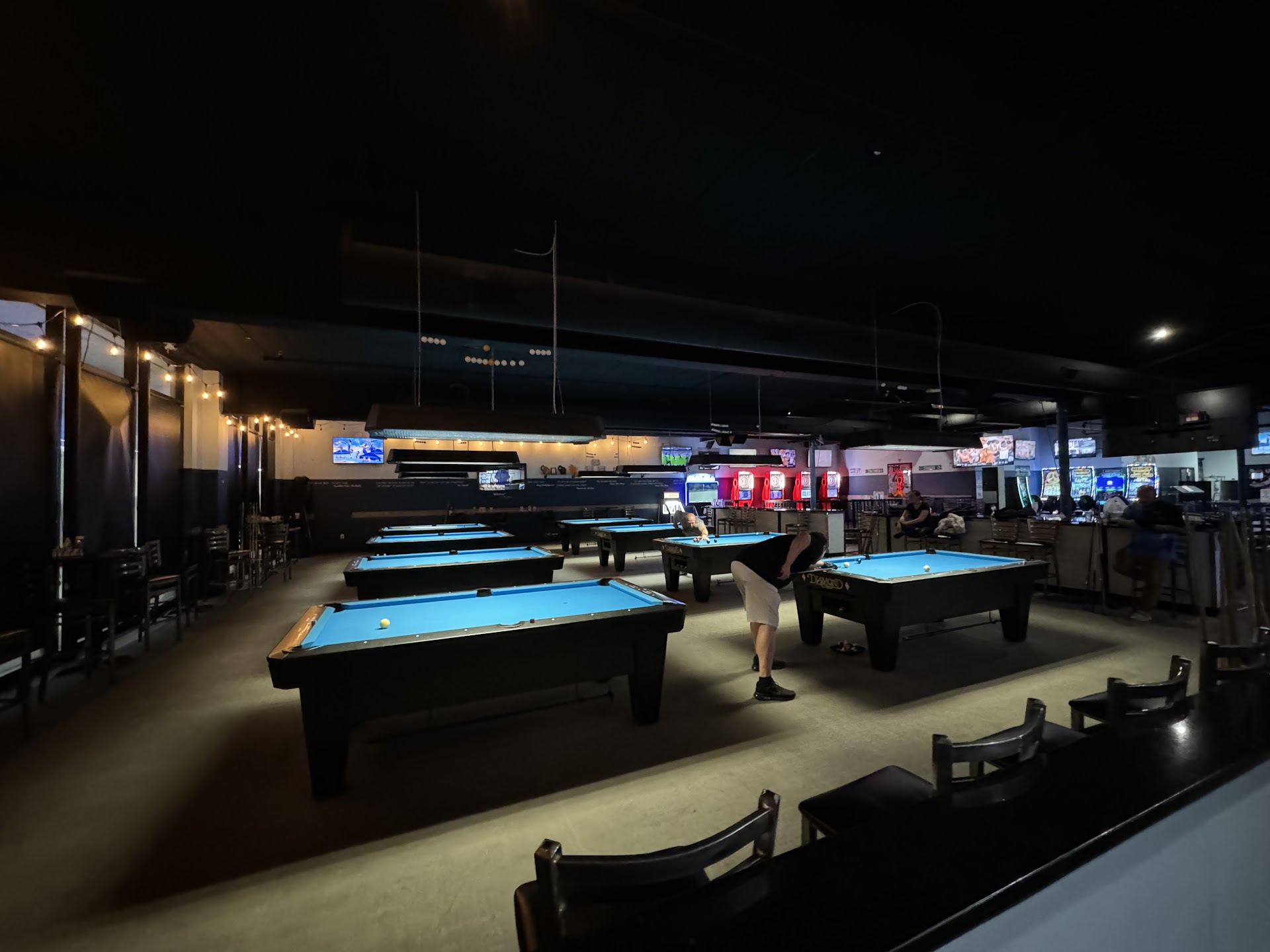 Read moreVery large space, 12 pool tables, lots of tables. I have been there as part of employer sponsored events twice. They provided chicken wings, chicken wraps, cheese curds, pulled pork and all the cheese and sauces to go with them. They were all very good. They have at least 15 beers on tap including a number of local favorites. Prices are in line with other area bars. Place is clean but very low-frill. Tables are simple with metal stackable chairs. They have high-top tables around the outer edge with higher, more comfortable chairs. Pool tables are rented on a duration basis, not per game. You get the balls from the bartender. Tables are clean and seem pretty stable/accurate. I played about 20 games between the two nights and never noticed any...