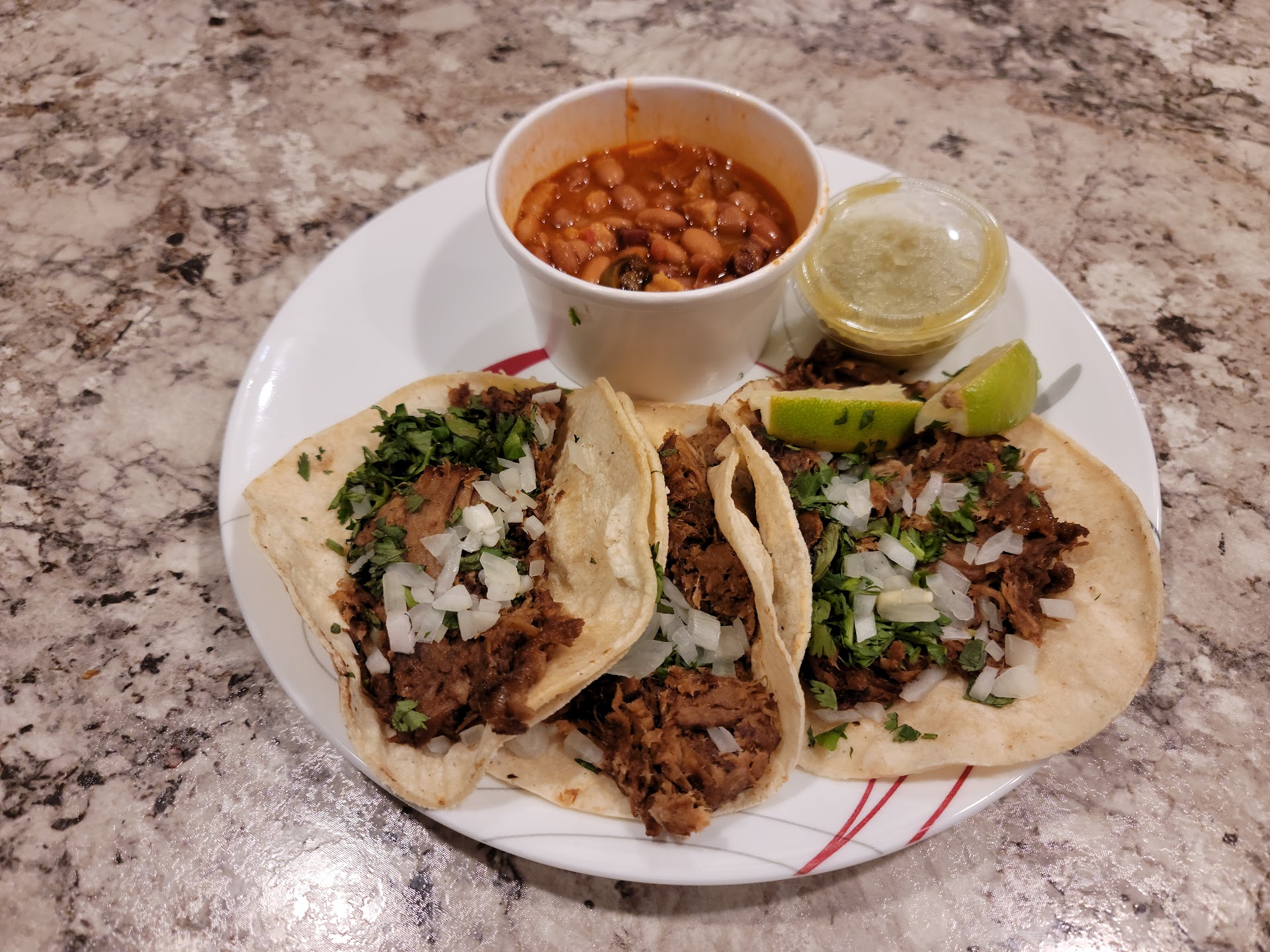 My wife loved the Pork Carnitas Taco Platter. The pork was so tender and well seasoned, and the tacos themselves were absolutely stuffed with filling. They almost wouldn't stay closed and meat just spilled out when you are eat them. The salsa verde was incredible. It was really light and fresh tasting. I would definitely recommend ordering an extra side of the salsa to smother the tacos in. The beans were decent, nothing too exciting but pretty good.