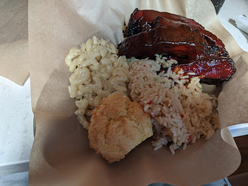 Read moreA 5 star rating? Half of restaurant is a kitchen remodeling store. Eat dinner and look at cabinets and case of toilet paper. Halfway through meal gal entered with her three year old and toy poodle in tow. Ate dinner with dog sitting at our table begging and child either standing there with pooch or running from one end of restaurant to front door , then clawing at front door window to - get out? Relaxing. Food(?). Could not tell difference in taste between BBQ chicken and pulled pork. Served in pool of - water? - and tasted watery. Baked beans recipe - open whatever can of pork and beans on sale this week. Dirty rice - no, not dirty rice, bland, overcooked rice with teeny tiny bits of red and green pepper but absolutely no flavoring. Mac and cheese would have been better if cook had added cheese and used water from BBQ chicken and pulled pork to give it some moisture. This is place for you if you want to sit at bar and drink in daycare/kennel but...