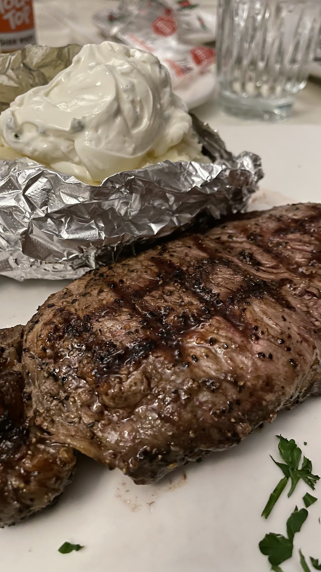 My "shrimp cocktail" consisted of 4 small shrimp in a small plate with a lime wedge and cocktail sauce on the side. Shrimp tasted bland, like they had just been unfrozen. Soup was ok. Baked potato came after everyone other meals had come out and was also just fine.