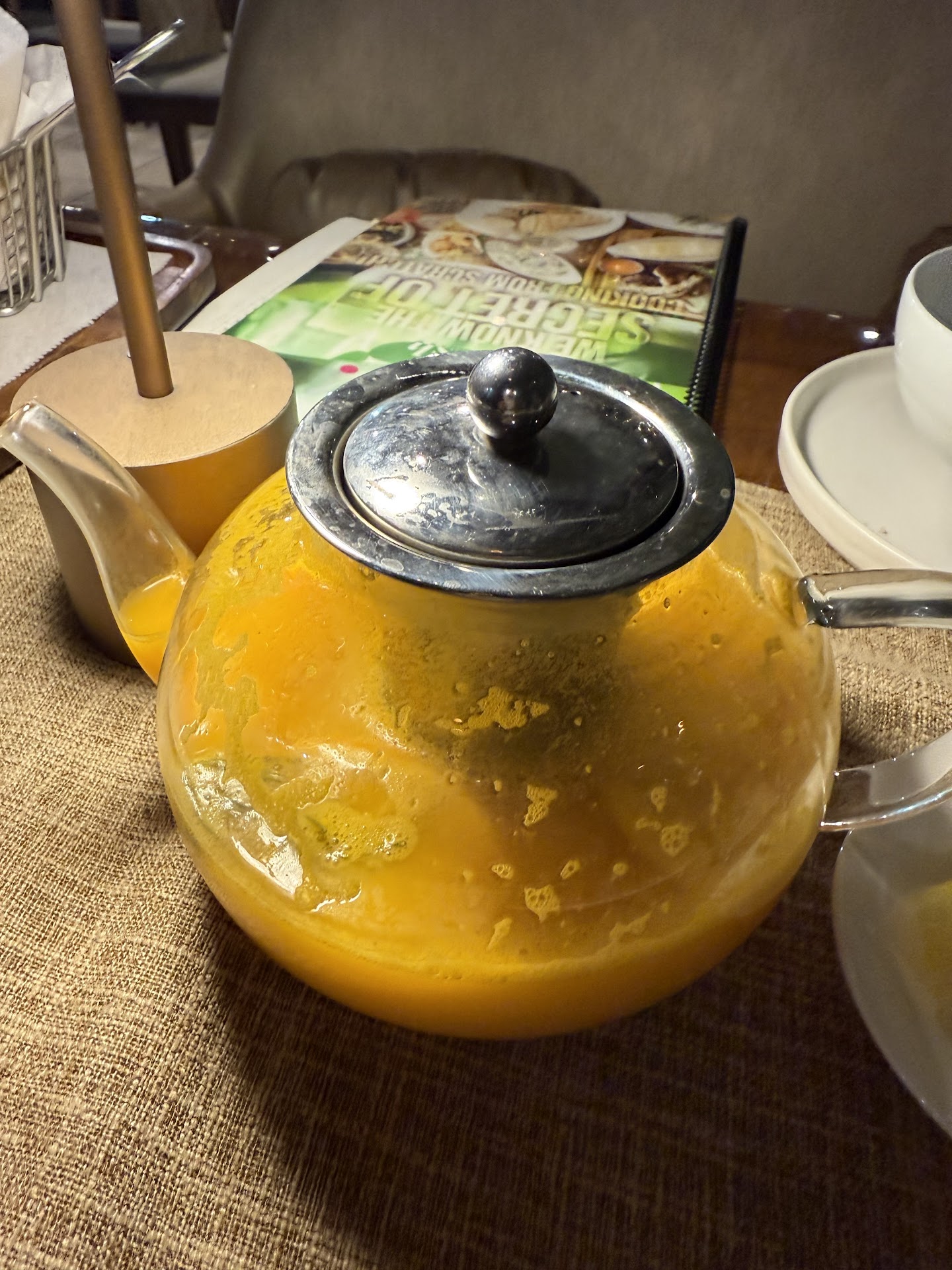 Once our dishes were brought in, waitress disappeared, she offered water but it never happened, didn't bother to ask if we need anything; we had no napkins, I even put box out to attract someone's attention... but still nothing, so we give up...It took a while to get a check. My complaints were not really answered. We came here to have a good time but got treated pretty close to the way it was... in former soviet...