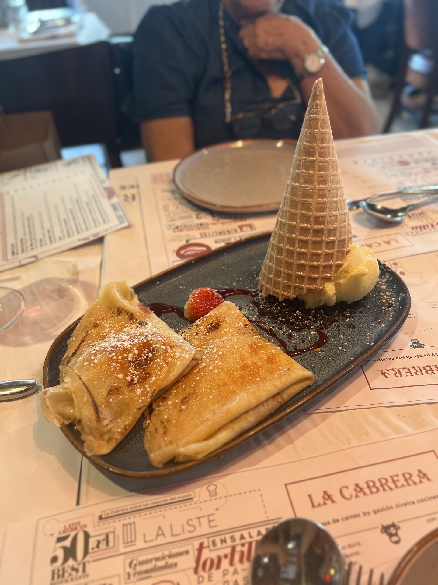 Also, the dulce de leche pancakes — which are one of our favorite desserts and should be simple — came a bit burnt on the edges, which really changed the taste.