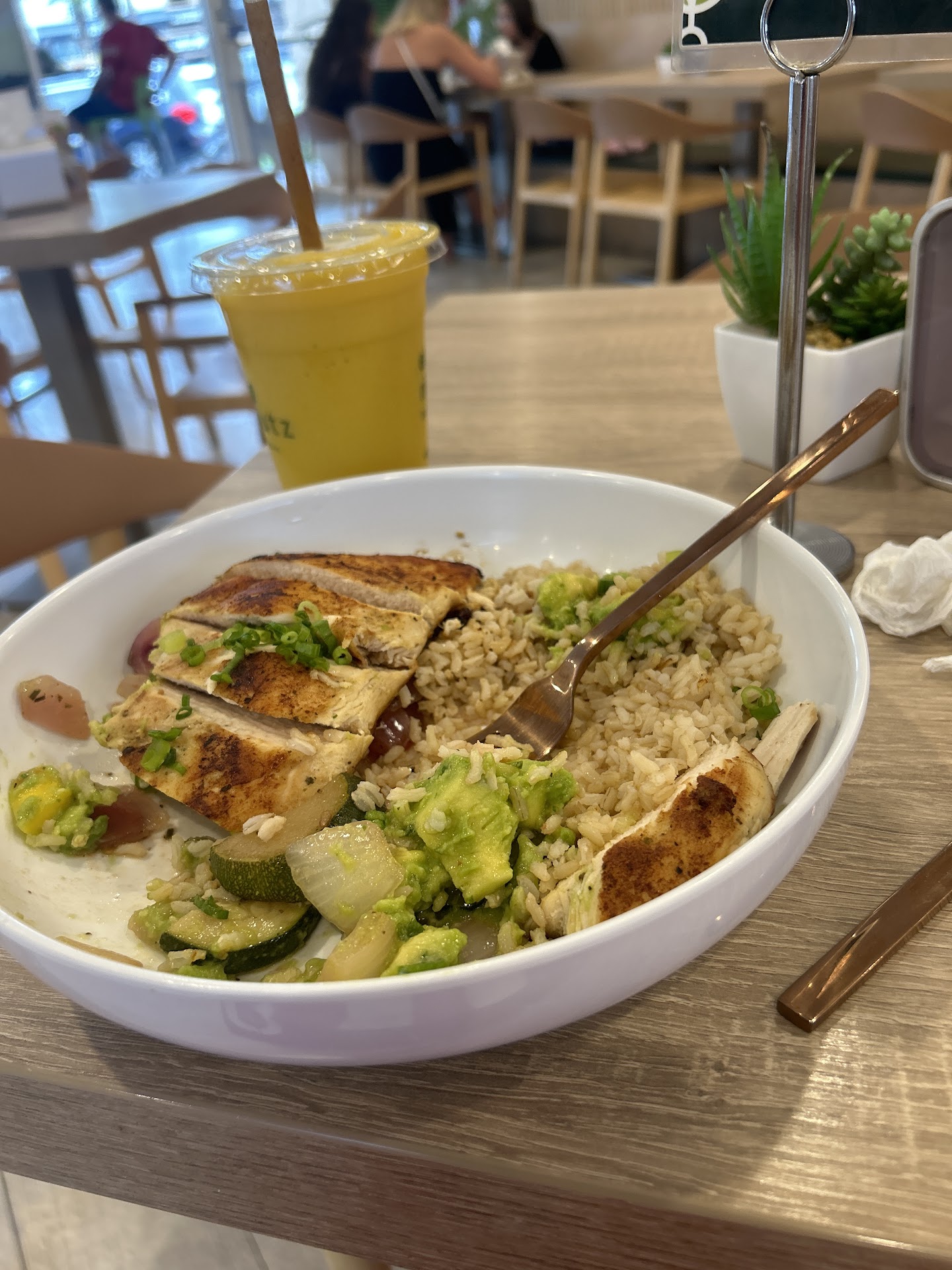 Read moreI am a huge fan and eat here on the regular. It is the only truly healthy place around the area. BUT I will have to say, since they made the change from Carrot Express the quality in the food has gone down a bit. I hope that you guys can take this criticism to help your business as I am someone who used to order every week and now I do sparingly. The chicken is very, very dry and very plain, not seasoned at all. When cutting into the chicken it is still a bit pink inside. I stopped ordering the wraps because the chicken is so dry that it ruins the entire meal even after dumping a whole sauce cup on top of it. The platters used to come with super fresh pico de gallo and a nice portion…Today, there is a spoon full of pico (mostly juice from the tomato) and the tomatoes seem not as fresh as I have seen in the past. The Cilantro lime dressing is now thick and lumpy; it used to be light and smooth. Lastly, the red onions that you put in the chicken salad now turn your chicken bright pink…I almost dumped the dish out because it looked like uncooked chicken. (Just something to take into consideration.) I truly believe these are easy fixes that you should take seriously as I have been getting the same feedback from others. Thank you and I hope to be a...