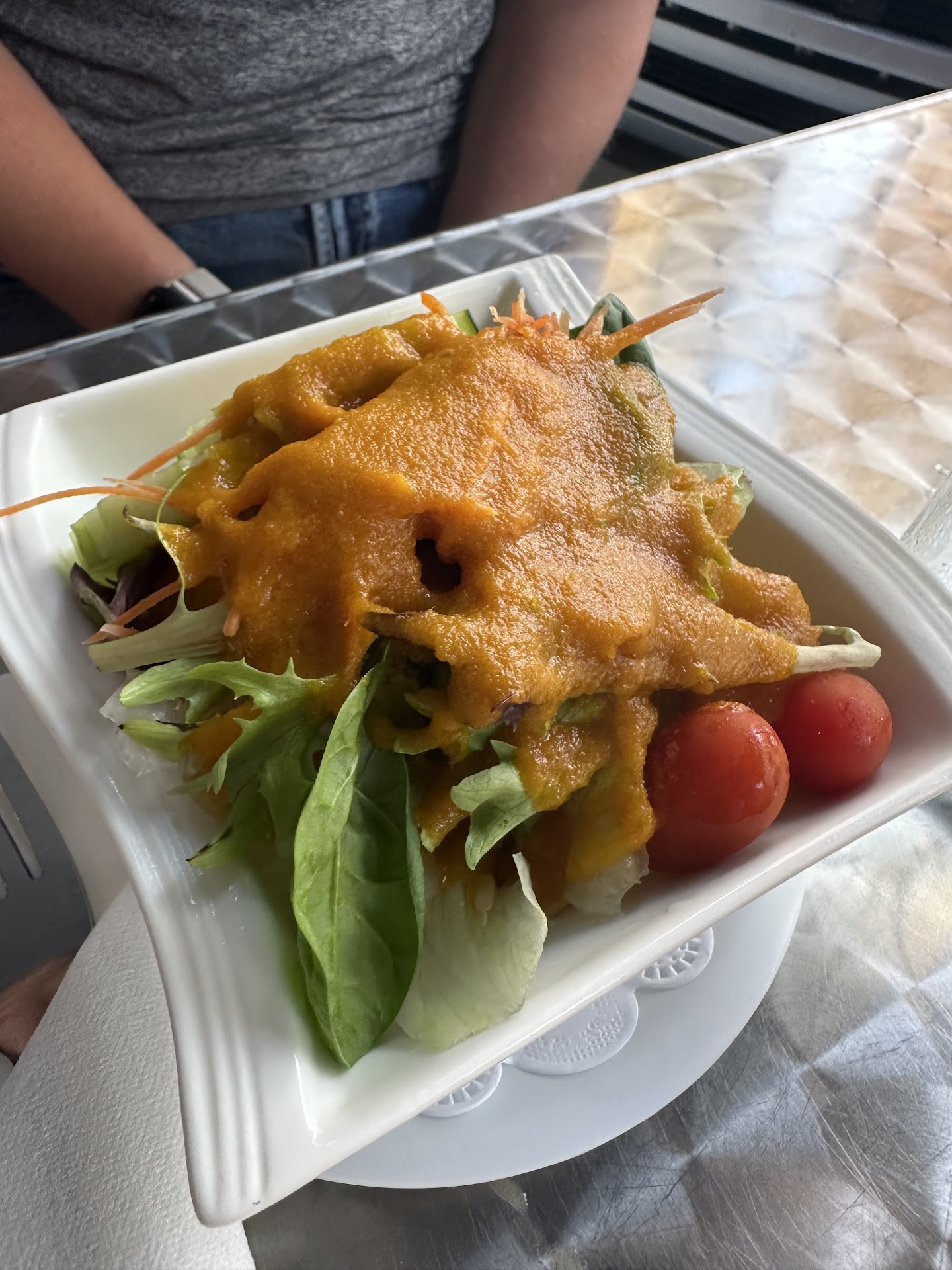 My wife and I both had the house salad with ginger dressing. However, the dressing tasted more like miso than ginger. Overall, I’d rate it a B-minus — acceptable, but not great.