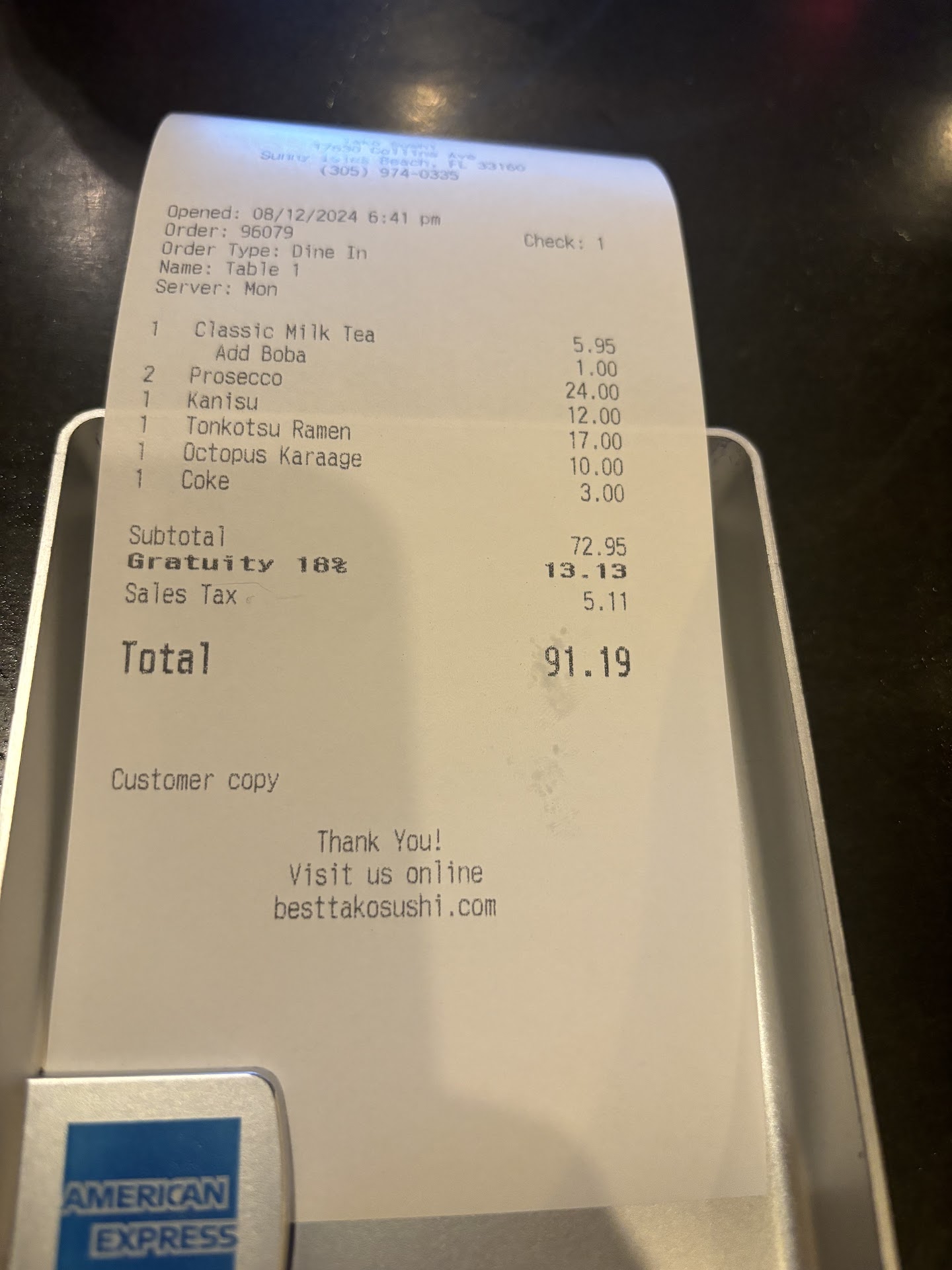 Read moreWe recently dined at Tako Sushi in Sunny Isles, Florida, and chose to sit outside. The restaurant is located in a small, modest shopping center — nothing large or upscale.