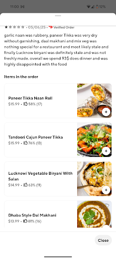 You order on the app but unfortunately I have to report the service is very, very slow. For these basic items, probably took 20-25 minutes to receive. And we had to ask for the bill.