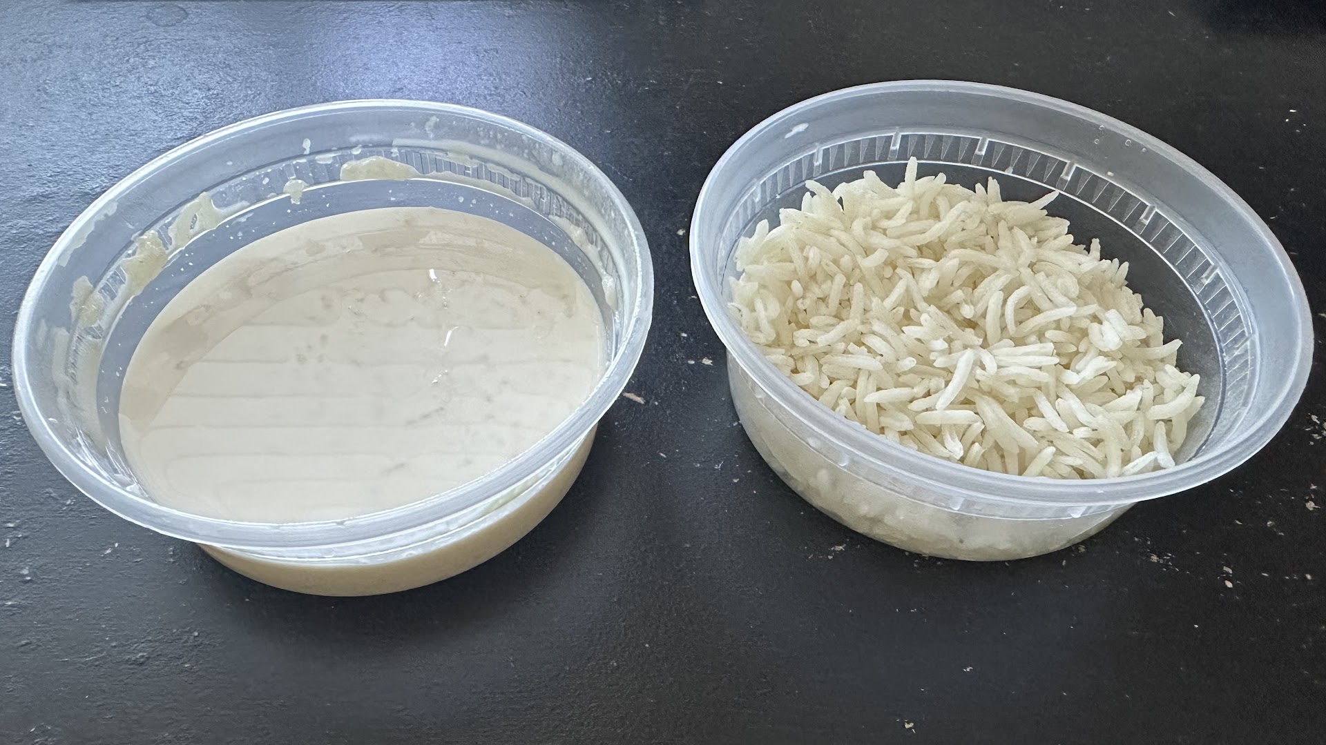 The waiter told me that I'm only allowed to take the rice in the boxes he had available as it's too big for the kheer. That sounded so absurd that I blurted out wtf (the whole phrase), and he promptly scolded me to mind my language. Then he told me again that I can't get another box for my kheer as they had run out of stock of the smaller boxes, and I'd have to pay 25 cents to use the "bigger" box for kheer. Or wait 10 minutes, as they had sent a kid to get more leftover boxes of the right size for my kheer!