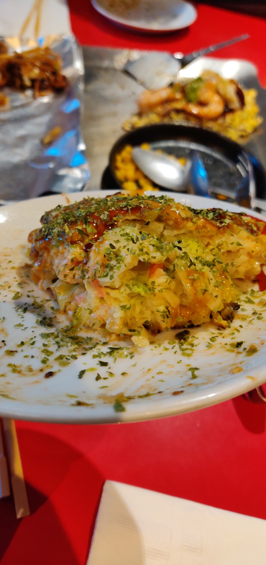 There is no experience here, meaning you don't get to watch them cook the pancake, instead everything is cooked in the kitchen and brought out to the table and placed on the hot plate to keep warm. I'd come back for dinner to try their dinner menu, which seems to contain a lot more options but would skip coming here for lunch. The restaurant is nestled in between 99 Chicken and...