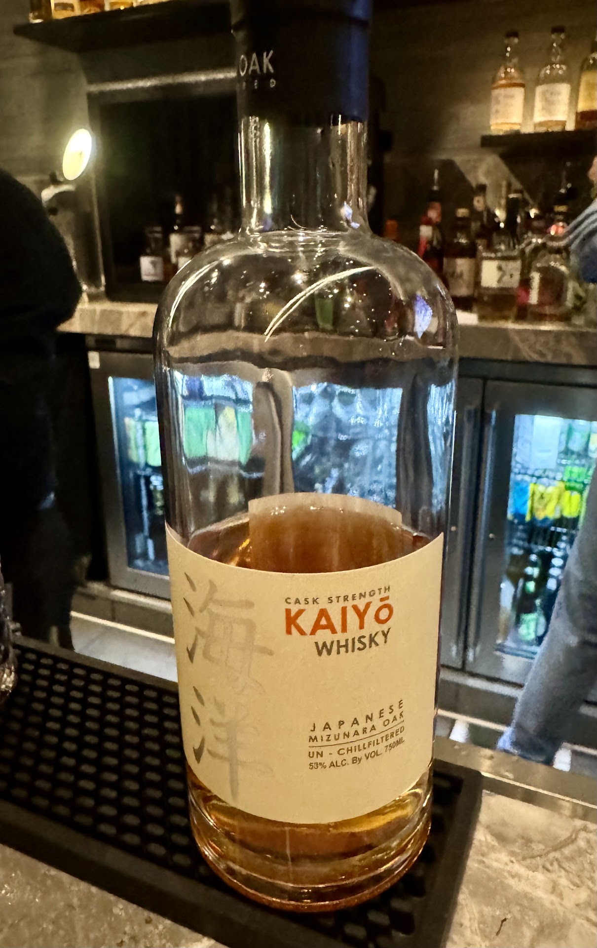We were full from dinner so no food or munchies. We wanted to start with a clean tasting of Japanese whiskey so we got Kaiyo cask strength (53% ABV). Cask strength means no water was added to reduce the ABV percentage. The alcohol was definitely way more pronounced and I felt that it overpowered the whiskey. The flavor did remind me of Glenlivet Scotch.