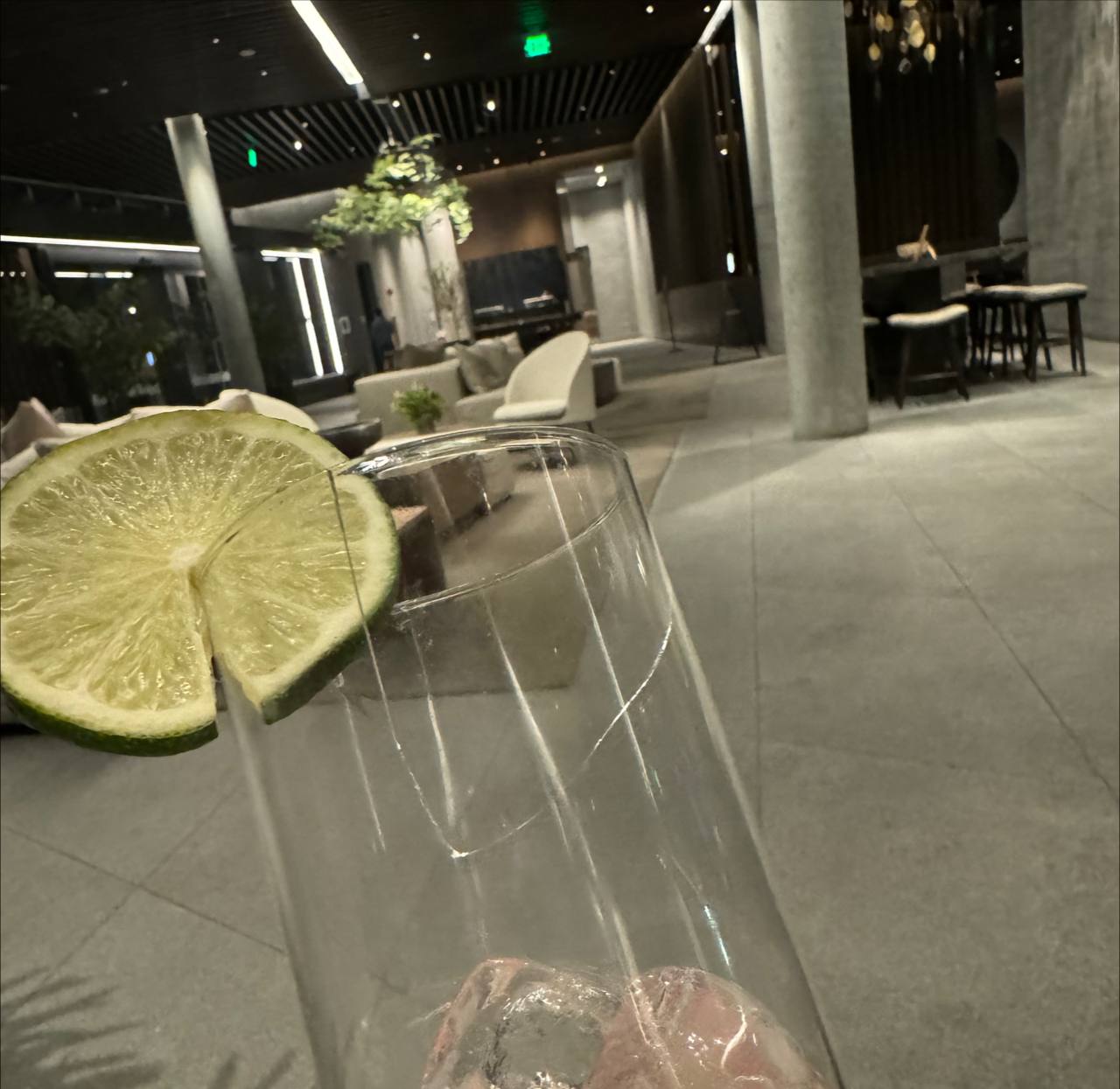 Read moreThis hotel bar is so beautiful but REALLY let down by the poor service and unskilled bartenders. I've been here now 4+ times and the service has always been subpar to awful. I expect a LOT better from a bar that charges as much as it does for their drinks and is in such a purportedly "high end" hotel: -Drinks aren't always made very well which highlights lack of training/skill in bartenders. Had a Far East Side and the mint wasn't double strained (just used the normal shaker strainer) which meant I had tiny chunks of mint floating around in the top of the drink. This is a really rookie mistake. -I've seen someone in my party order a "Green with Envy" and the drink came out...purple? Then staff were adamant that it was the right drink even though we had ordered it just the night before from the restaurant (which uses the same bar for drinks) and it was definitely green then. Didn't even taste the same. -Bartenders just don't seem very happy to be there and seem to only give adequate service if you're sitting at the bar itself. Sit anywhere outside of the hightop bar, even directly next to it and staff are way less attentive to the point I've had to walk up to the bar to order another round. -Had an obviously broken glass. This happens in high volume bars (and I'm understanding in those) but should NEVER happen in a bar of this type. Photo attached. When I showed the bartender it was pretty much just shrugged it off like it was no big deal.