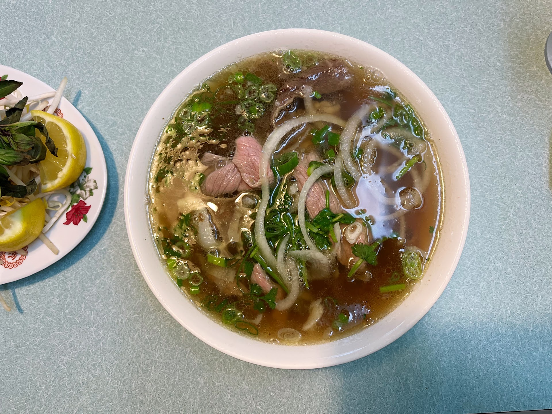 Read moreWas passing through this place during a trip, and felt hungry so I stopped by here for lunch. Nice opening hours, immediately got a seat, menu very comprehensible, and very friendly staff. The moment I walked in I knew I didn’t regret this— the smell of authentic Pho was on point. I ordered #8 (steak, flank, and tripe). Goodness, the broth is money worth. I know there are many different levels of tenderness and softness people prefer to have their pho cooked, and this was definitely a bit on the harder side (though, if you want a more tender feel just put your meat towards the bottom and let heat do the work). Also the pricing is excellent, I got a small size and felt pretty full after that, though someone I was eating with got the large and there’s just a one dollar difference but the large is large size indeed. If you wander into that plaza, I betcha you won’t regret walking in to...