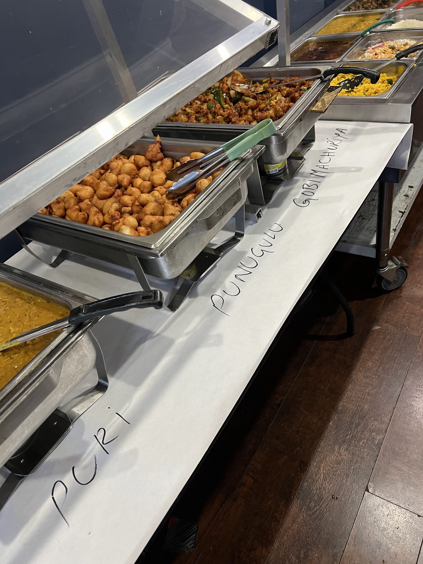They have a diverse set of options from veg to non veg. This includes all kinds of veg options including paneer biryani, several veg curries, and more. For non-veg they have many options including chicken, egg (a rarity in Indian restaurants), and goat Biryanis. They have butter chicken, and some kind of sheesh kabob which was very tasty. The quality of their ingredients is very high. I tried almost everything, and not a single dish had a low quality feel. They include drinks on the side. You may assume this means water and chai. YOU WOULD BE WRONG. They also include high quality beer (today was Modelo - a very nice Mexican beer) and Mango Lassis. All included in the buffet. The only condition is that you not waste food, otherwise they charge you for the wastage. Their sides are well matching including raita, and 3-4 other liquid sides. They also have great naan and dosas. And several types of prepared rice. Lastly, they have a great set of closing desserts including laddu, the aforementioned mango lassi, rice pudding, and one or two other options (all were good).