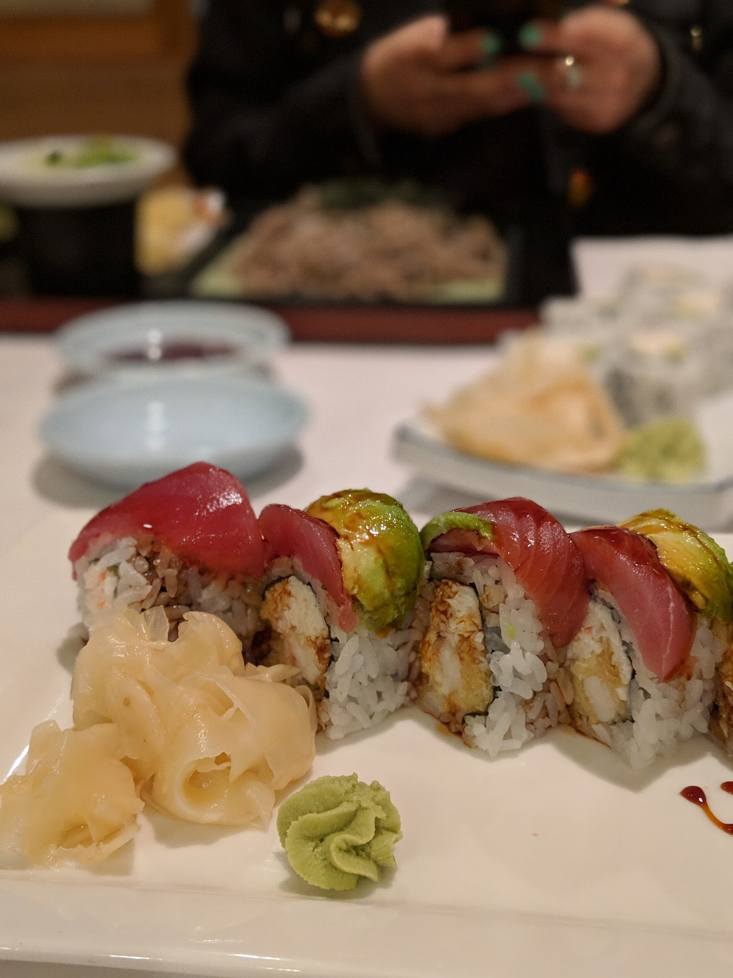 Read moreCopy and pasted from my Yelp review: Don't come here if you want a timely meal. The service is FREAKING SLOW! The waiters seem untrained. We walk in the door, ask for a table for 2, and then stand there awkwardly for a while because the waitress that seemed like she would seat us says "OK" then disappears into the kitchen. Finally a different waiter comes and asks if we've been helped. Well, if we had been helped, we'd be sitting down, not awkwardly standing at the entrance. Then he asks me where I want to sit. The restaurant is really big. I don't know where I want to sit! Just tell me where to sit! After we finally get seated and finally get our menus and finally order, the food takes a LIFETIME to come. I don't care that there's only 1 sushi chef; it should not take 50 minutes to make a chirashi sushi and 2 rolls, period. And might I add that the 2 rolls were tiny as hell. I guess they were sort of fat, but at $10 a pop, I expected more than 4 pieces each. The food itself tasted decent, but I don't even care. There's no way I'll ever go back. I seriously have NEVER waited this long for food....