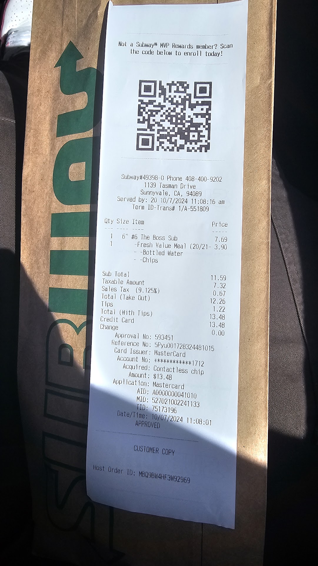 So this isn't the first time I've ordered from this Subway, but it was the first time I'd used the app. I've been waiting for over 20 years for Subway to bring back the barbecue chicken sandwich, so I was looking forward to it. Unfortunately, it was not to be. Not sure if it was me not knowing how to use the app, or the guys making the sandwich, but it was a chicken sandwich, just not a barbecue chicken sandwich. The app is supposed to make things better, easier. I think I'll just keep it old school, and order my sandwich when...
