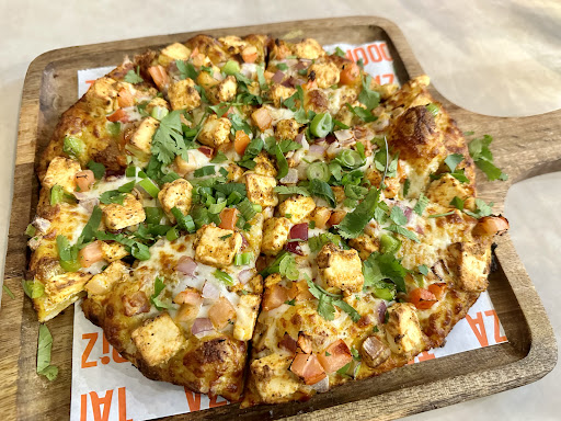 We went here for a post lunch meal. The order consisted of 1 medium Chicken Tikka with traditional crust and 1 medium Malai Chicken with thin crust. Both had distinct flavors. The pieces of chicken were very generous on both. We could clearly make out the chicken was indeed in the tandoor before making it's way on the pizza and the malai chicken had been well marinated too as it was soft and tasted really good. The accompanied veggie toppings were fresh and crisp. We really feasted our eyes before digging in. For once the actual pizza looked the way it is advertised on the menu. Perfect! The crusts on both tasted great and we did not even think twice before munching on the edges. It just felt like a continuation of pizza rather than sticking out. The spice level on the pizza cannot be customized. They do have all different options on the menu though.