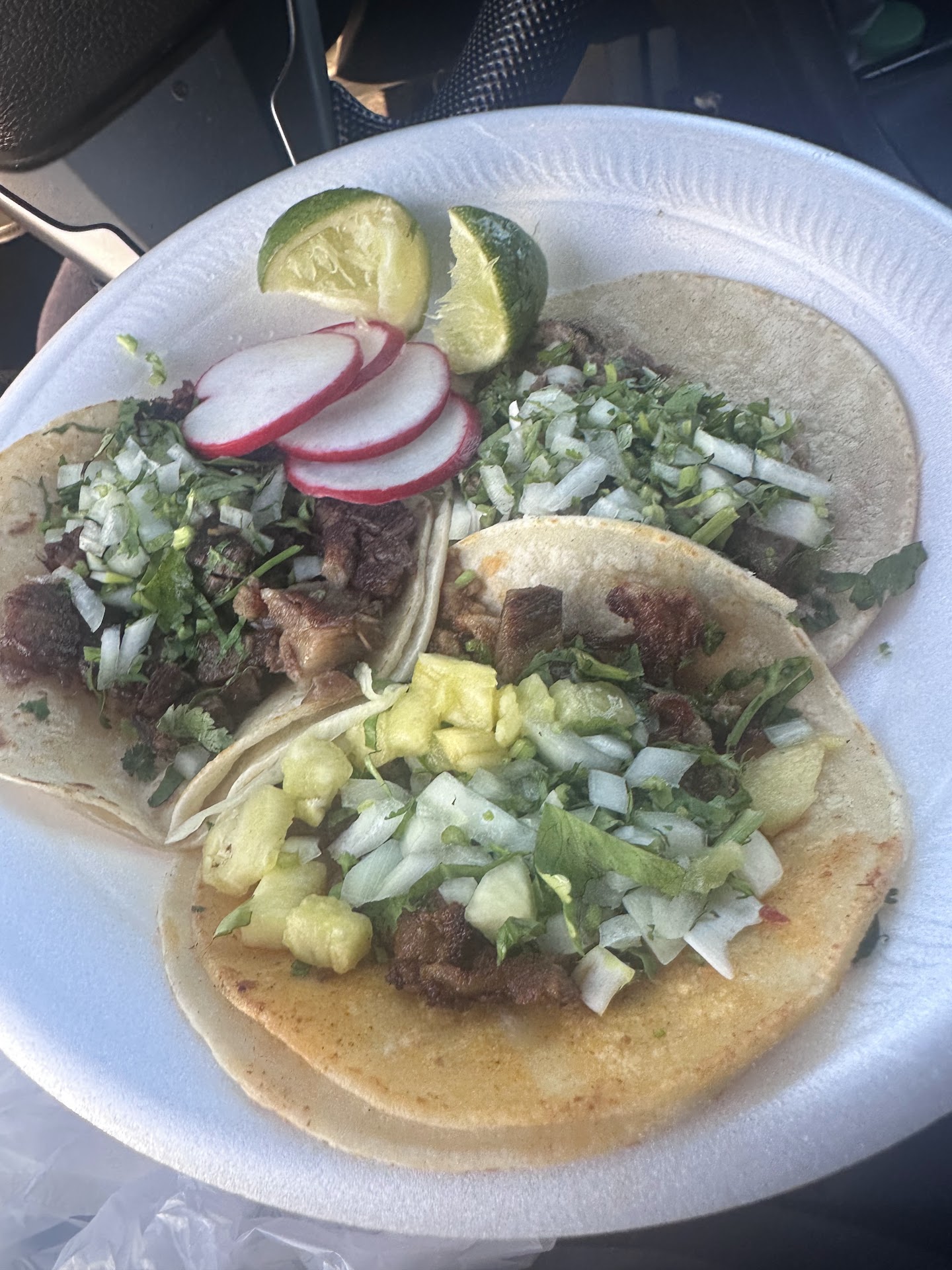 Quality wise, tacos are good. I got carnitas, cabeza, and adovada. Didn’t see if it came off a trompo but tastes like it. Cabeza cooked down and super soft with a lot of rendered meat, and carnitas was crispy and had good Chunks of pork....