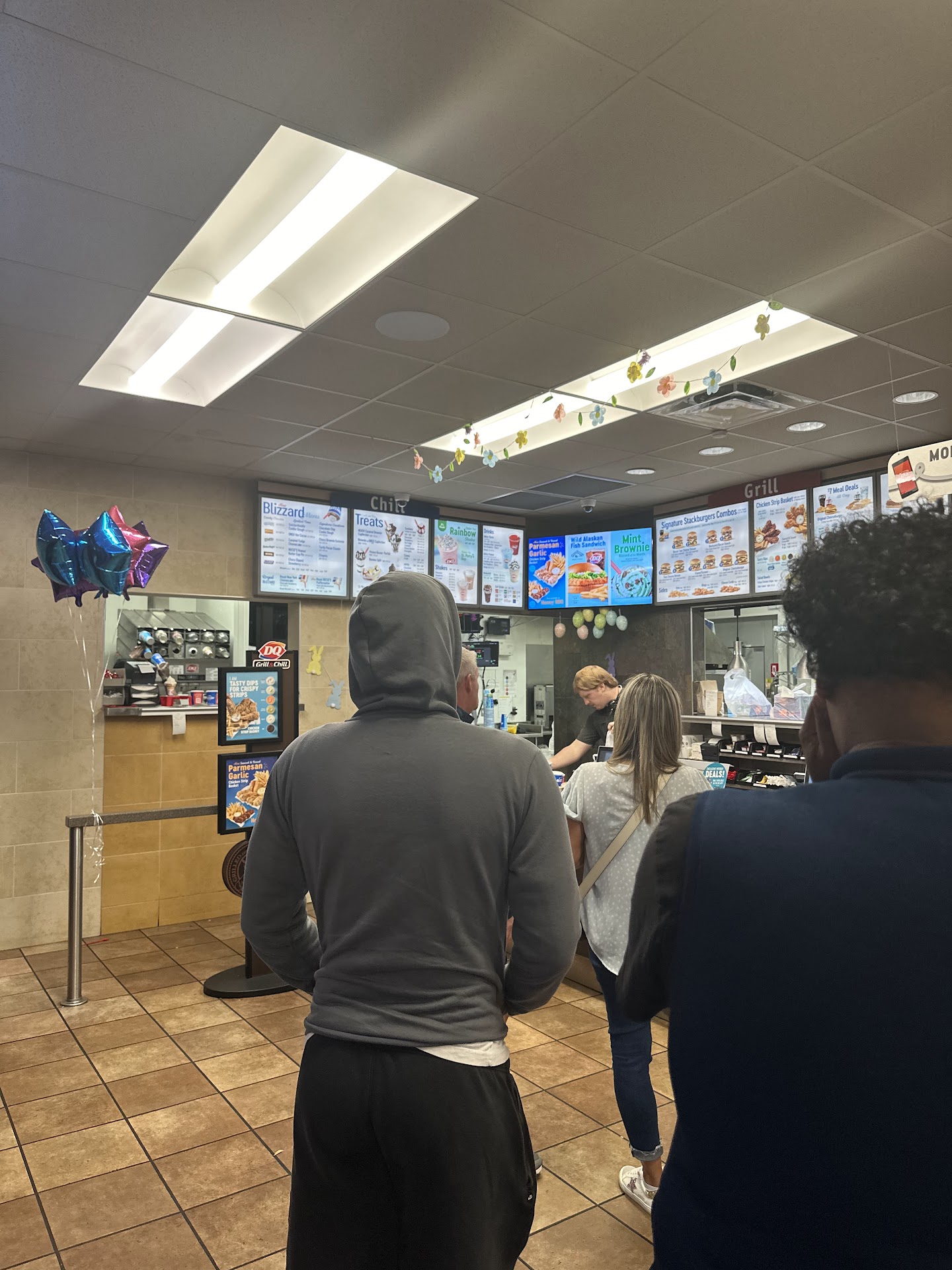 Read moreFirst time visiting at this location and had a bad experience. I didn't want to leave a bad review, but my order TO GO was not as pleasant. I ate in and enjoyed the atmosphere. I order a cheese burger and my bread was stale. I ordered 2 blizzards to go and while I was standing waiting on my order. One of the workers who was making them. Dropped my blizzard and spilled some out of the cup on the counter, placed my cup back on the counter and another worker cleaned my cup off a little bit and put a lid on my cup and gave it to me. I politely asked can they make my blizzard over. It was a slight issue. A new customer who never been there felt some type of way on how I was been treated. My blizzard was made over and I was on my way home. When I got home I noticed my blizzard was leaking. I thought it was from the top of the cup. It was leaking at the bottom of the cup. My cup had a big hold at the bottom and leaked in my car everywhere. I'm PISSED! I couldn't enjoy my blizzard when I got home because it...