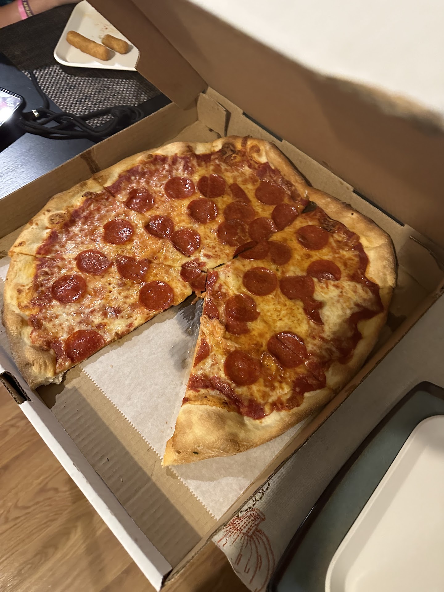 UPDATE: It is sad to know that even the owner has questionable credibility. He responded to my post by stating that his staff ASKED us if we would dine in, which THEY NEVER DID. I was the one who mentioned it SEVERAL times during the whole interaction but the hostess told us to place the order with her and NEVER OFFERED TO DINE IN EVEN THOUGH WE SAID WE WERE GOING TO DINE IN. The owner only chimed in when the food was given to us, way after we paid and tipped. According to the owner, the restaurant was "busy"; he has 22 tables, but only FOUR were taken with guests dining in. Who would imagine that a capacity of 18.18% would be a BUSY DAY (give it that I do not know about your pick-up sales and do not care) and even use it as an excuse to treat new customers just trying to find good local places in their new living city. But shame on them. It is sad to see an owner with no accountability and little to no hospitality, especially when your guests are visiting for the first time; they have places to go, like CATCH A TRAIN and little time to eat. Not only so but I would much instead have given a tip to a DESERVING SERVER than a hostess with 0 hospitality skills who just wanted to keep chatting behind the counter with the other hostess standing there because it seems like their interpersonal social life is more important than paying guests who could become loyal to the business as it is our closest local pizza place to people who just moved from ANOTHER CITY to this new neighborhood. There was no friendliness, EXCEPT for the guy server with curly hair and glasses. He is the only reason I am giving this place a ONE STAR because the rest of their team deserves NOTHING; he treated us nicely and with respect no matter what and even offered assistance while everyone else was in the corner just chatting. What was SO WRONG with being UNDERSTANDING to NEW CUSTOMERS who were unaware of anything and MISLED ON PURPOSE BY YOUR OWN STAFF? HOW WRONG WAS IT TO EVEN OFFER A PAPER PLATE OR EVEN A NAPKIN TO GUESTS WHO WERE NOT AWARE OF THE RULES, NO MATTER HOW MANY TINY LITTLE SIGNAGES THEY POSTED? IF YOU HAD EVEN OFFERED US A NAPKIN I WOULD HAVE TAKEN IT AND WOULD HAVE BEEN GRATEFUL AND EVEN BECOME A REGULAR OF THE ESTABLISHMENT. BUT INSTEAD, IT SEEMS WE ARE BEING NAGGED FOR A SIMPLE MISTAKE THAT YOUR OWN STAFF NEVER, NOT EVEN ONCE, STOPPED TO CORRECT US, CLARIFIED NOT SHARE WITH US! TRULY TRULY A LACK OF HOSPITALITY. I even said, "Thank you." what did your team do? They laughed and mocked us while leaving. NOT EVEN AN OUNCE OF HOSPITALITY OR...