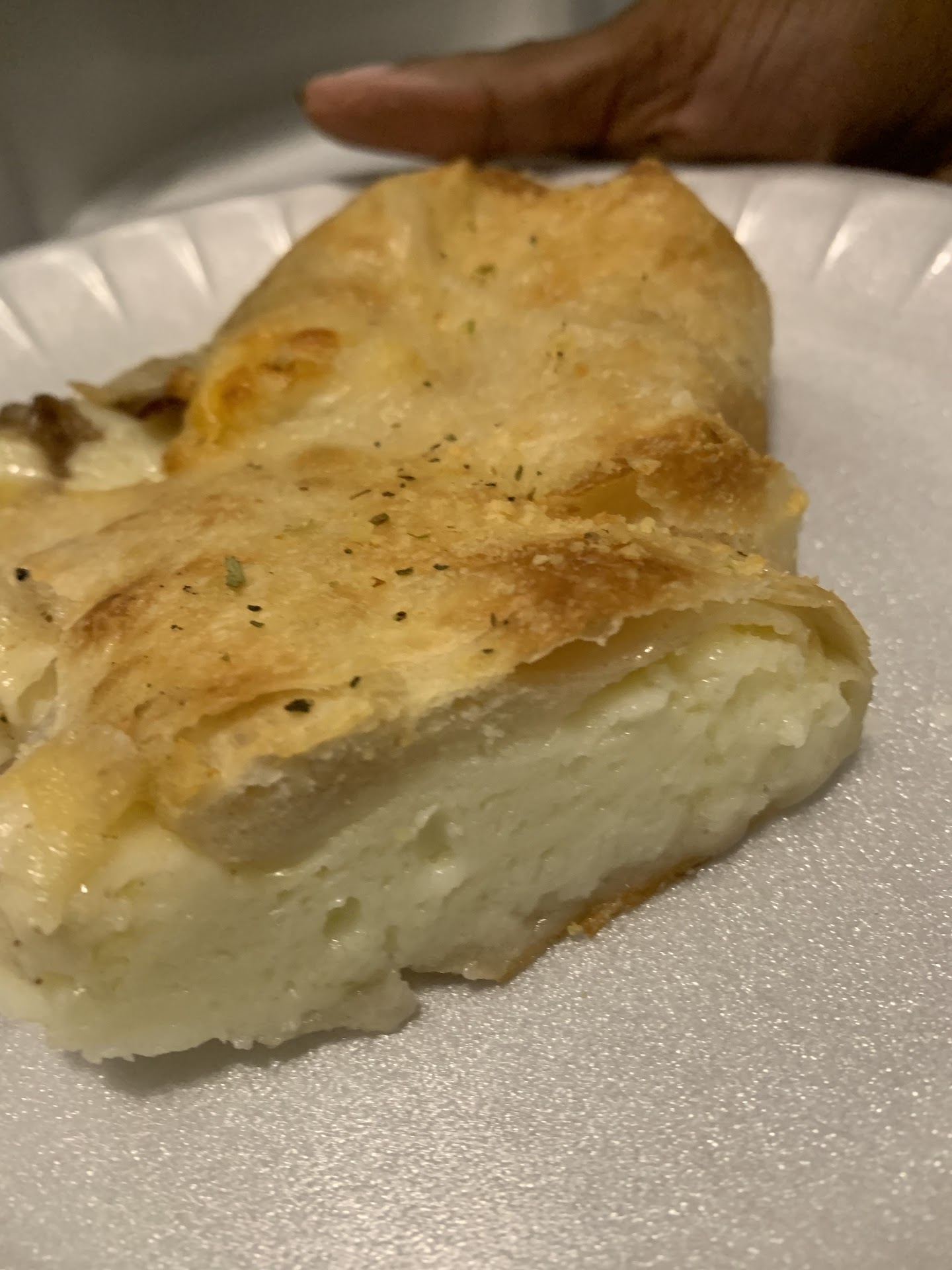 Two guys working on the back we’re extremely rude. They slung the Stromboli in the box after I waited 45 minutes for it. As you can see it was raw and uncooked. The onions inside were raw. The meat was scarce and there was no cheddar cheese visually and literally as you can see. .