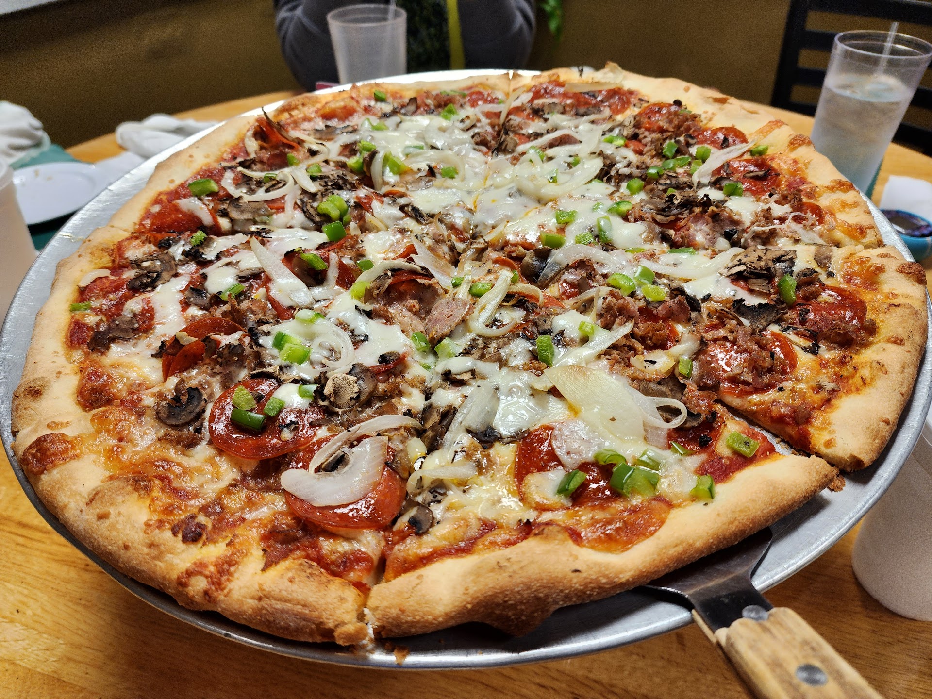 Read moreToday I ordered the large Godfather Stromboli and a steak sandwich; minus green peppers. It is supposed to come with mozzarella cheese, cheddar cheese, onions, green peppers, and mushrooms. So I took it back.