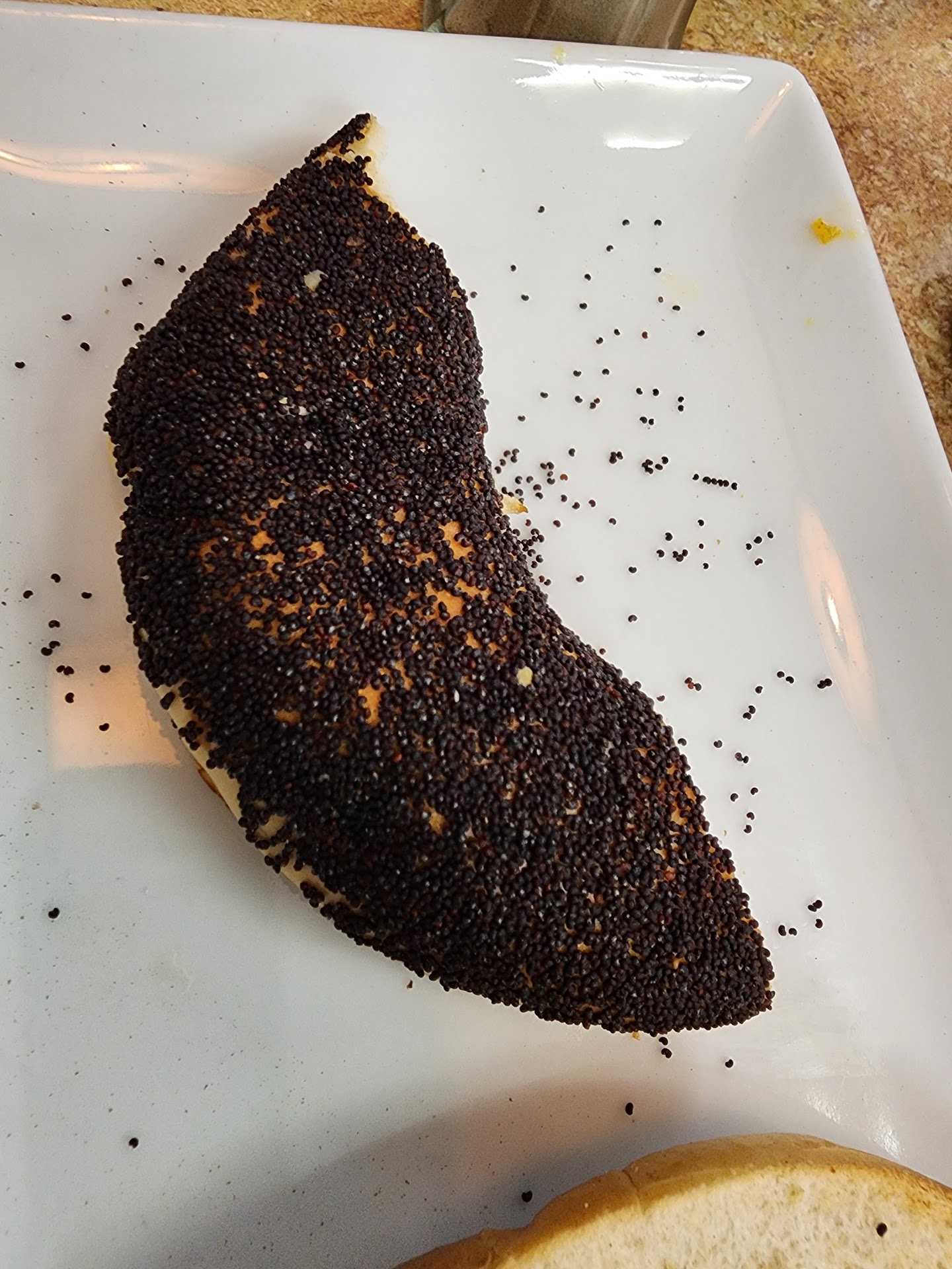 Mom had the bacon (crispy)and egg whites with home fries (nicely seasoned with onions)and a sesame bagel. Hubby had the scrambled eggs with chopped corned beef and swiss (cooked nicely) with grits (traded for home fries cause they weren't as thick as he likes....waitress had no problem trading them) and an everything bagel (loaded with seasoning). I had corned beef hash (well done) and eggs with home fries and a salt bagel. All of our eggs were cooked perfectly and the bagels were so fresh. The coffee, however, was a little on the strong side.