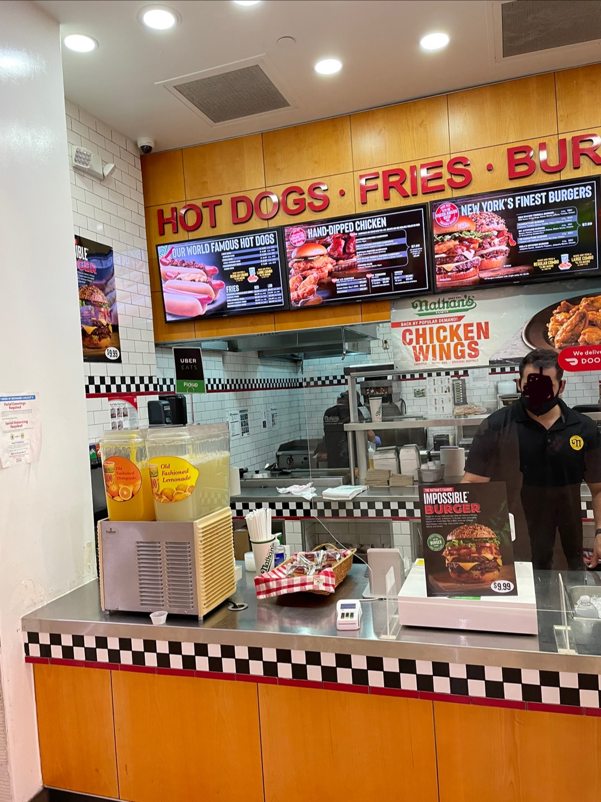 It is located in the mall food court. I opted for Nathan's because we wanted quick food and something that I was sure a 5 year old would eat. They have a variety of options like burgers, hot dogs, fries, and even wings. I ordered the chili dog with fries. I got my niece corn dog nuggets and fries. Everything was hot and cooked to order. It was tasty. We both ordered the lemonade; it was both sweet and tart. The staff...