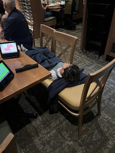 We had a five-year-old who fell asleep before eating because we hadn’t been allowed to order sooner. We asked if he could lie down on an empty booth right next to us, but the manager refused—even though the restaurant was nearly empty. It just felt unnecessarily rigid and lacking in compassion.