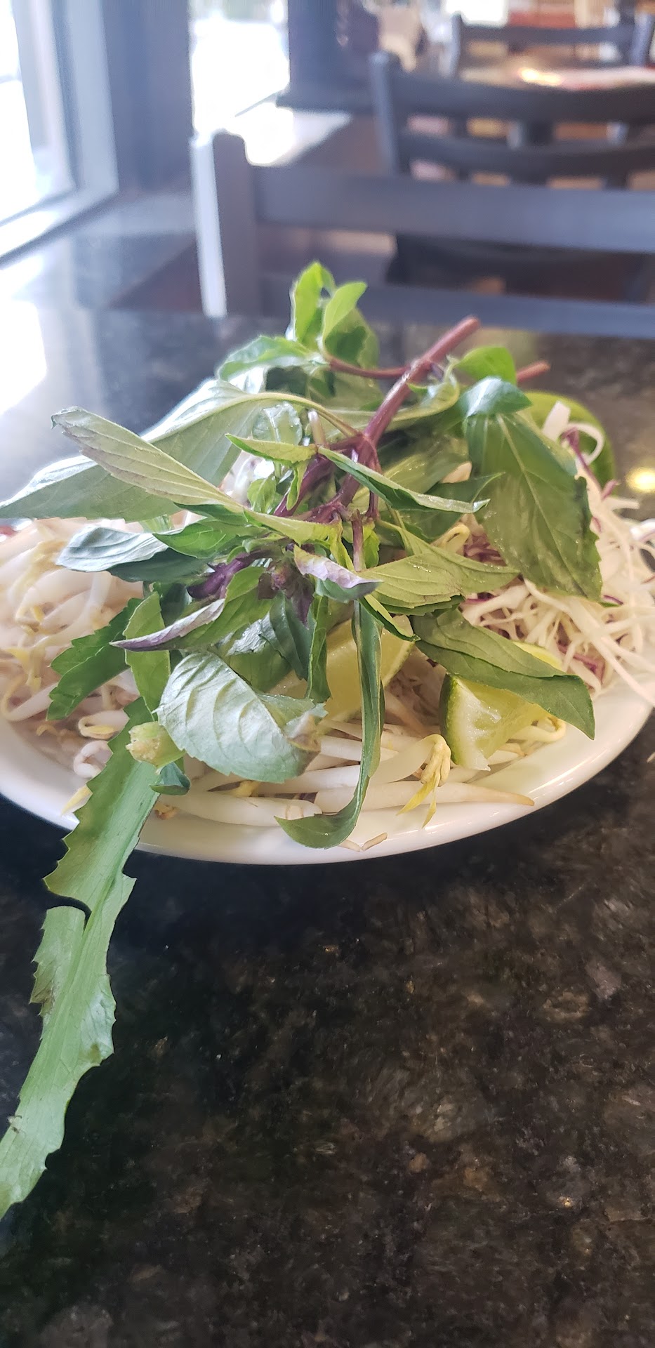 The Pho Tai is very good. Portion sizes are excellently balanced, neither too large or too small. The two drawbacks are that the broth is just a teeny bit weaker than we would like, and that they don't use or provide regular cilantro, but rather a cousin to it, commonly called culantro. While very similar in flavor and aroma, it isn't (in our experience) quite as strong as traditional cilantro, and thus the effect is diminished.