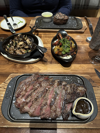 Read more1st our waitress Carla was great. Food not so much. Salmon was over cooked and my Ribeye at 74$ was not so good. I asked for medium rare got something over medium I was chewing a lot and very little flavour was coming through. I actually sent it back Ive sent back food once before in my life it was that bad. The explanation I got is it looks that way because its aged. Today I looked up cooking aged meat. This is what came back and what I already knew but I wanted make sure to not make an @$$ of myself. "Because of the moisture loss in a dry-aged cut, the only real difference when it comes to cooking, is the cook time. Dry aged meat will take about 30% less time to cook than a non-dry aged cut." this is hopefully for the staff to understand to not repeat the excuse i got, and for the management that hires to pick knowledgeable chiefs with experience.