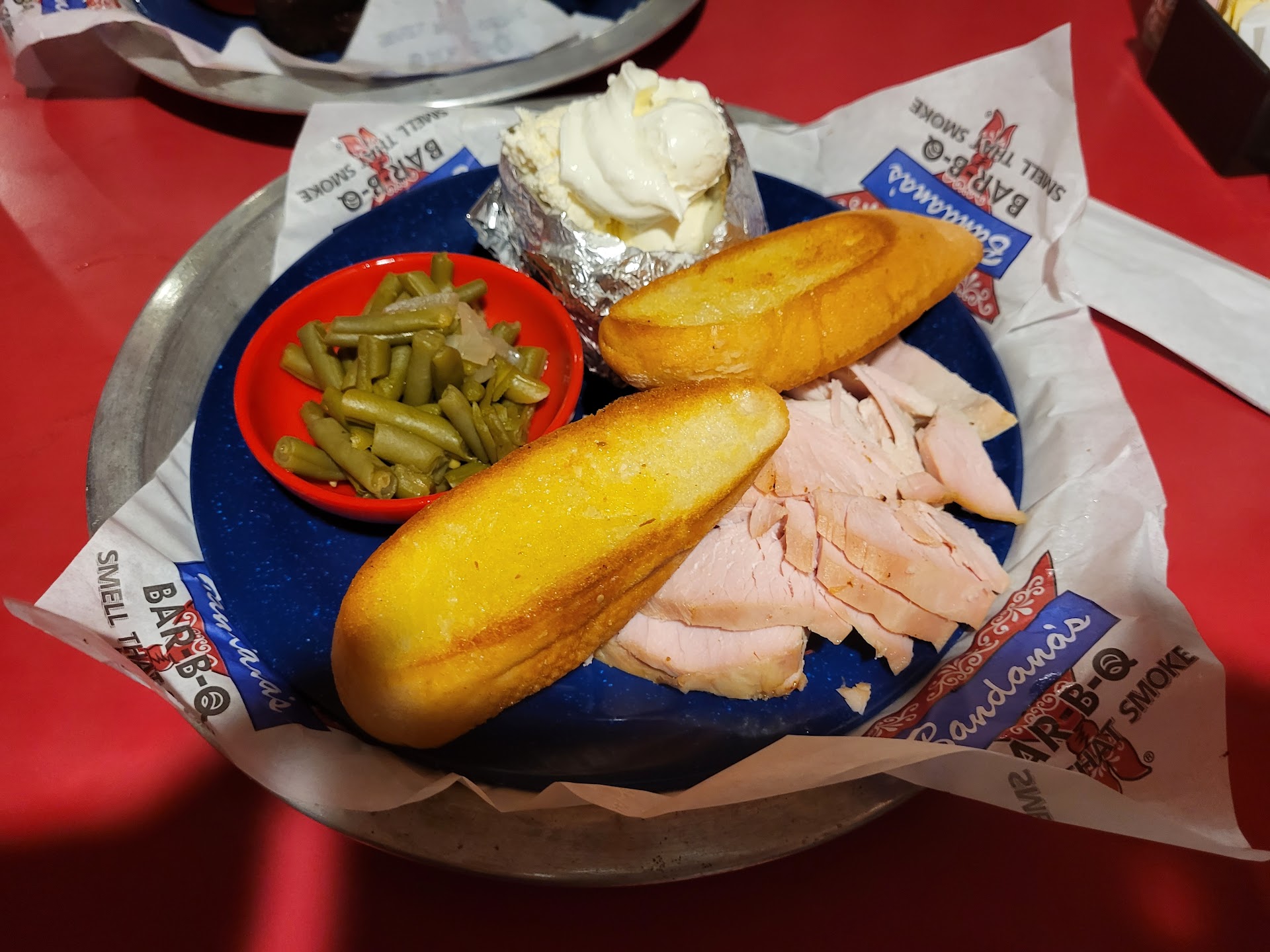 Read moreDid a family lunch here at Bandana’s Bar-B-Q was supposed to be 4 adults and 3 children, the order placed quickly and the wait was a bit longer than expected here. Food was brought out as 3 adult lunches and 4 children, told our waitress the issue but it didn’t get fixed right away and ended up having to ask again about the correct order, instead of just getting the correct order they suggested to eat the kids meal and then brought out an extra 2 ounces of meat but, by the time it came we had already completed eating so the one ate alone while the rest watched. Food was not bad for the BBQ and the sides at least in my opinion were less than what I was expecting for here in St Louis. I hope that they improve as this pandemic ends and we get back to some normalcy. Have had better downtown STL and wished I would have taken them downtown for their visit, they were glad to have tried the BBQ here...