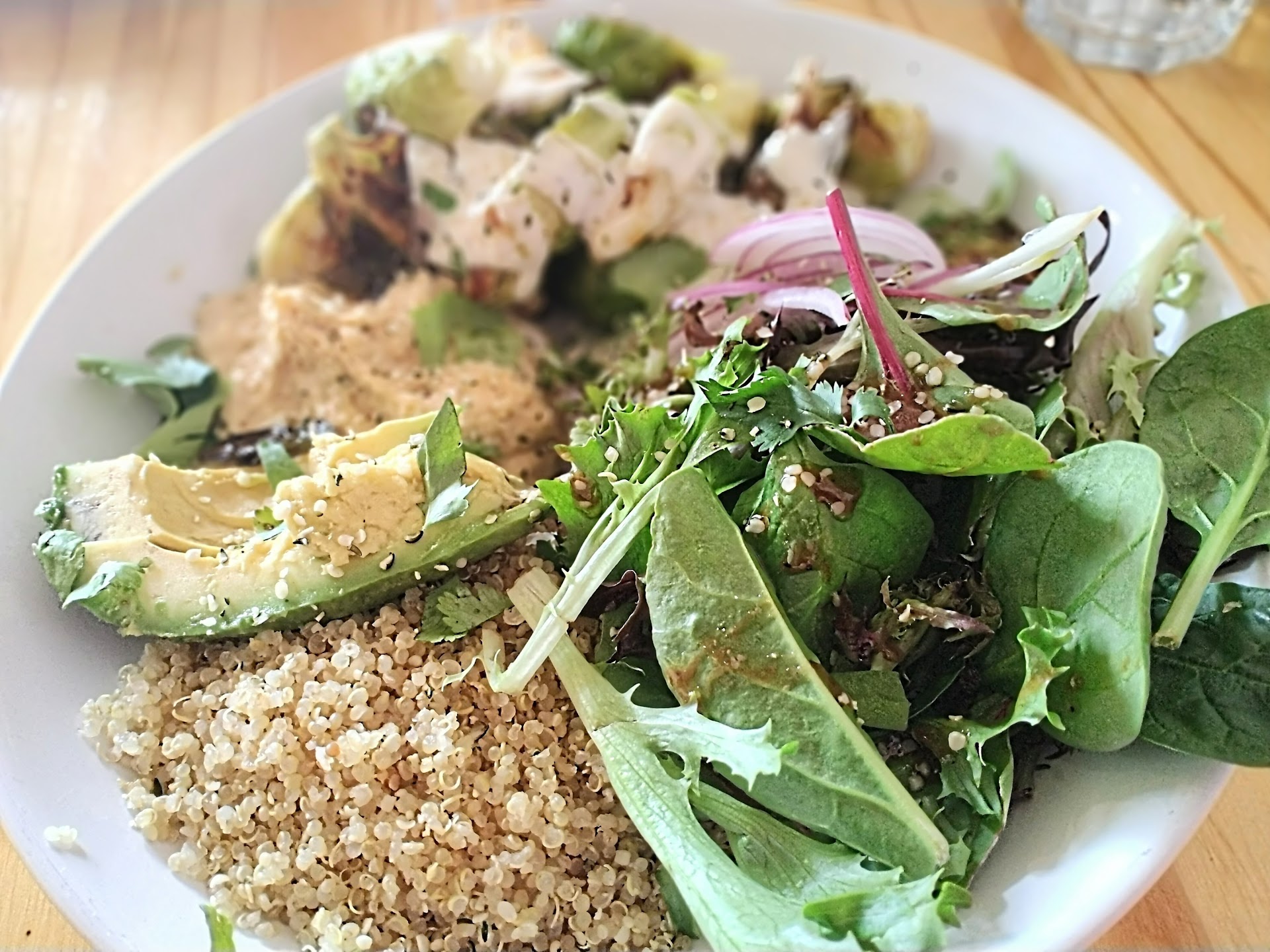 I ordered the Mediterranean Hummus Quinoa Bowl and split the (mushroom and kale) quesadillas with my son. The quesadillas came with a side, so I chose a side salad not expecting much. Everything was amazing, and the presentation was perfection. The side salad was so beautiful and the quesadillas were divine. My daughter split an Impossible Burger with my son but wasn't very impressed. In-house dishes are always the best. She also picked out a slice of Acia Cheesecake from their cold case and shared some with me. Yum!