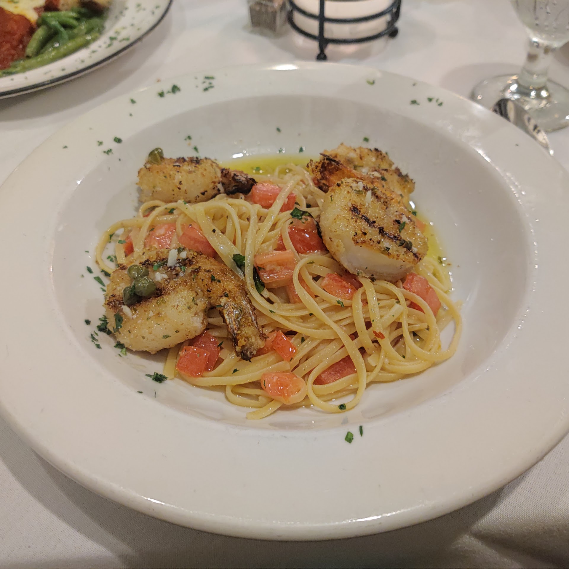 The chicken was boiled instead of grilled or pan seared with no flavor whatsoever and the shrimp scampi had four buttery shrimp in total that were crisp whereas the pasta had no flavor not even salt. It was rather disappointing and we came back home rather let down because we were pretty keen on having their dessert, but given how pitiful the food was we dropped the idea. Besides, when I asked for seasoning Jimmy our server looked rather snide and uninterested.