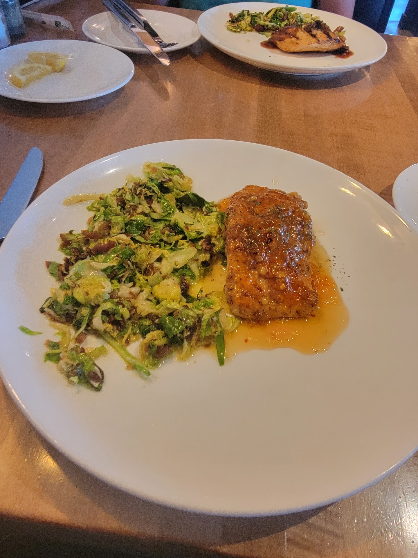 First, the server was actually quite good, pleasant and tried to be helpful. The issue arose with the drink/food, I felt ill almost immediately. We were a party of three. I ordered a drink that had vodka and lemonade... I believe the lemonade had soured because after a few swallows, I just wasn't feeling well. Then bread was brought along with the salad I was sharing with my friend. I ate a roll and a little salad and spent most the rest of the time in and out of the restroom. My order, a chicken sandwich, was brought out while I was away and my adult daughter and my friend were nibbling at their food when I returned and let me know the chicken looked very dry. My friend then showed me her steak and said.. I asked for well done but.. it looked like charcoal. I said that looks horrible, have you said anything? I wasn't feeling well enough at this point to try my sandwich.. but when the server saw her meat, he agreed that it didn't look good and took it away for a redo. My daughter said her tacos were okish, but pretty bland. (She's in the army and eats pretty much anything). I pulled a small sample of chicken from the edge of my sandwich and it reminded me of what it tastes like when I precook something, freeze and reheat - still smells awesome but dry and flavorless. But knowing I wasn't feeling as well as I was before coming in, I asked my daughter and friend to try a taste and each was given a sliver of the chicken pulled from the edge of the sandwich and they each confirmed they thought it was dry and didn't bother with eating their slivers, placing them on their plates. In the midst of this we had asked for a box for my meal as I just couldn't eat... I had tried one of the sweet potato fries and it wasn't fully cooked, somewhat starchy, and stuck in my throat so I returned to the restroom to try to dislodge it...by this time my friend's recooked steak arrived, looking much better than the first and I was informed that she let the server know if the issues with my plate while I was away. He came by to let us know the manager said my chicken couldn't be dry since they marinated it. I thought that sounded like a pretty odd reply .. it stayed in the box and the server told us they took her meal off the ticket as well as mine and I was welcome to take mine home or not. I opted not since something seemed way wrong and couldn't see how reheating it would make it any better. So while they took these items from the bill, it didn't make things better but I'm sure the manager is happy we won't be back. His attitude to this was demonstrated in the parking lot when we were trying to leave. When we exited, we noticed that another customer had parked on the diagonal lines marking ramp access making it so narrow, while I could open the ramp, there was no room to get my chair on it (about a 4 in gap). My friend went in to see if they could assist in finding the customer and having the car moved off the ramp access. The manager came out, did not speak to me, but suggested that one of my passengers pull my prescribed van out of the space to open the ramp in the middle of the lot for me to get in. Neither of them have ever driven my van, it would require them learning the unique controls, removing the metal plate over the pedals, the knob on the steering wheel, and some other things that I would have to show them from the side then replacing these items after rolling around in the parking lot.. maneuvering around for a half hour or so in the lot as opposed to just locating the person who illegally parked, causing the issue in the first place. So his suggestion was ludicrous. So I inevitably opted to roll close enough to my ramp to drop my bottom onto the ramp, pull myself up toward the van and try to pull the chair over the edge of the ramp. (My friend couldn't help lift since she had hip replacement surgery and my daughter had walked to the restroom or something since we were in the parking lot for some time at this point. Luckily, a kind couple saw the challenge and came over to help lift the chair into the van. We...
