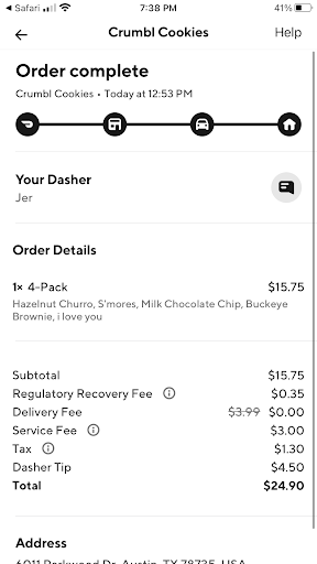 Read moreI placed a delivery order for 10/25/24 to be deliver at 11am. When called to let the Sunset Valley in Austin know that I didn’t receive the order the young girl on the phone didn’t really know how to look up my information which was fine. The young girl final found what she needed and she said that she could have it redelivered but didn’t know if it would arrive by 5pm. I let her know that I placed the order to be there at 11am and it was around 1pm when I realize the order had yet to be delivered. The young girl I guess got frustrated and hung up on me. I called back to as for a GM and they told me there wasn’t a GM and that they had several Managers. One of the Managers Ariana said that the girl didn’t know how to pull the information. It’s one thing not to know how to pull the information it’s another when you hang up on a Customer because you’re frustrated. This was the first time I had placed a big delivery order from them. Ariana seemed to have a hard time getting her words out and seemed to be pretty young which was fine, but I want to say is shame on you Crumbl Cookies for having unprofessional Employees trying to handle Customer issues. Very disappointed in this location. I typically will pick up from this location from time to time but now. I will definitely communicate not to go to this location. Just for the record the first order never made it to the location. They stated that the driver was new. So where did...
