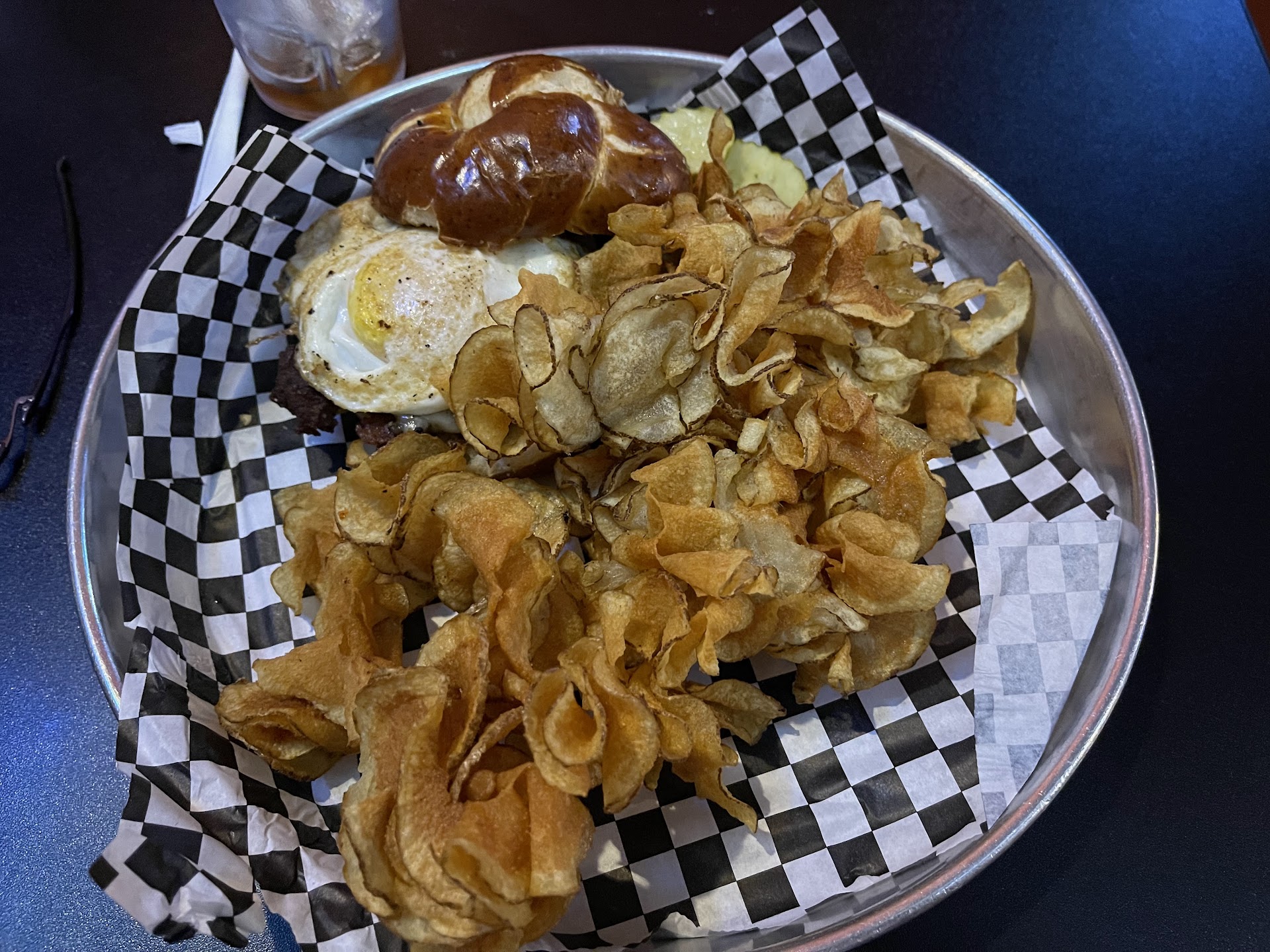 The facility was very clean, they were following covid precautions, and the staff was very friendly and thorough. Lots of variety on the menu, but I decided to just go with a classic and get a cheeseburger with the beer onions & tots. The tots were pretty good, although I can't say I could detect much flavor aside from "salty" in the seasoning. They have a myriad of dipping sauces for $1.49 a pop and I got chipotle ranch.
