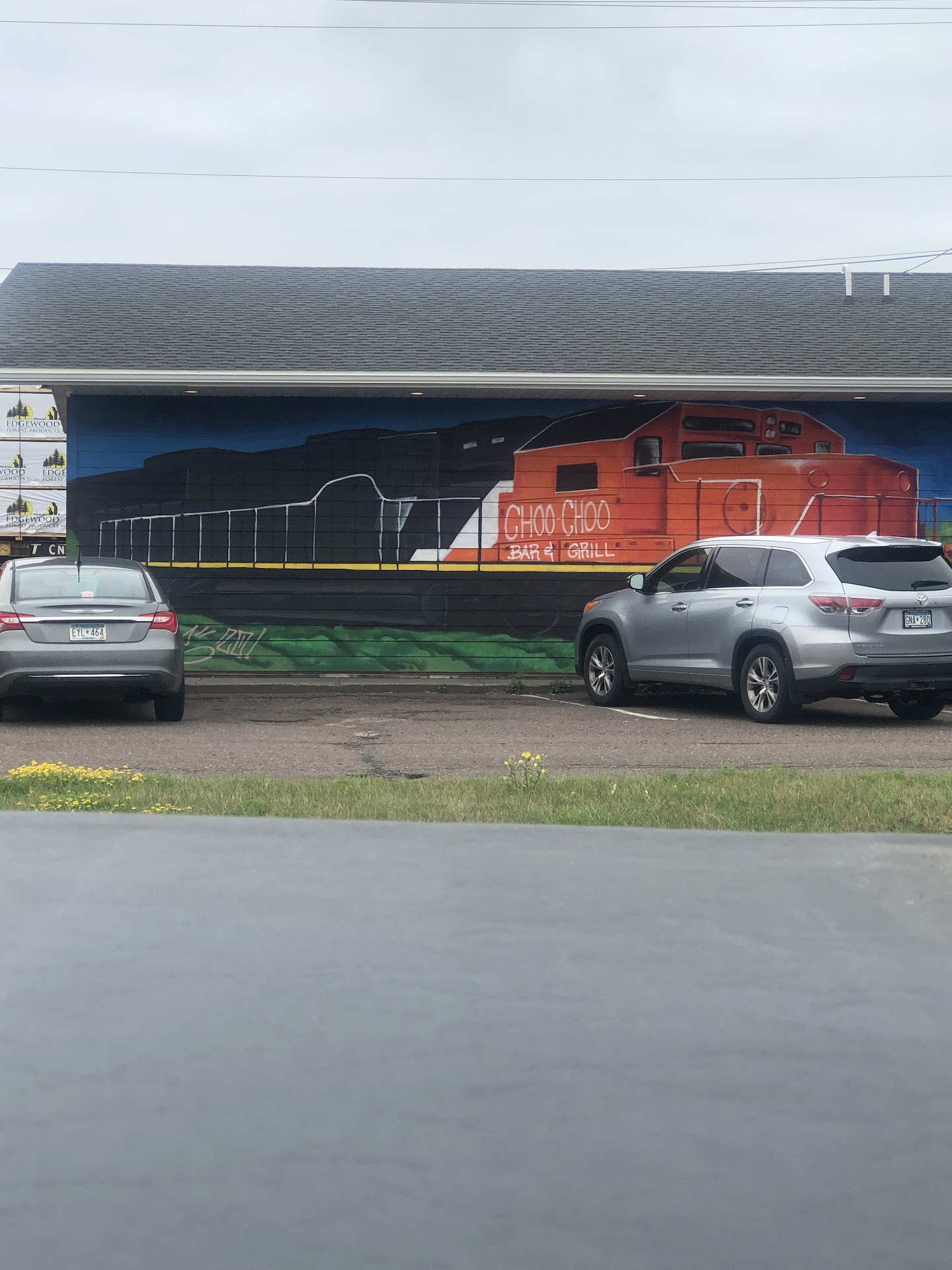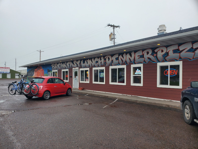We spotted the Choo Choo Bar & Grill on the way to our RV campground which was nearby. I'm a railfan, so the fact that Choo Choo Bar & Grill was backed up against Union Pacific's Itasca Yard was intriguing, plus neither of us had ever seen a bar & grill that serves breakfast!