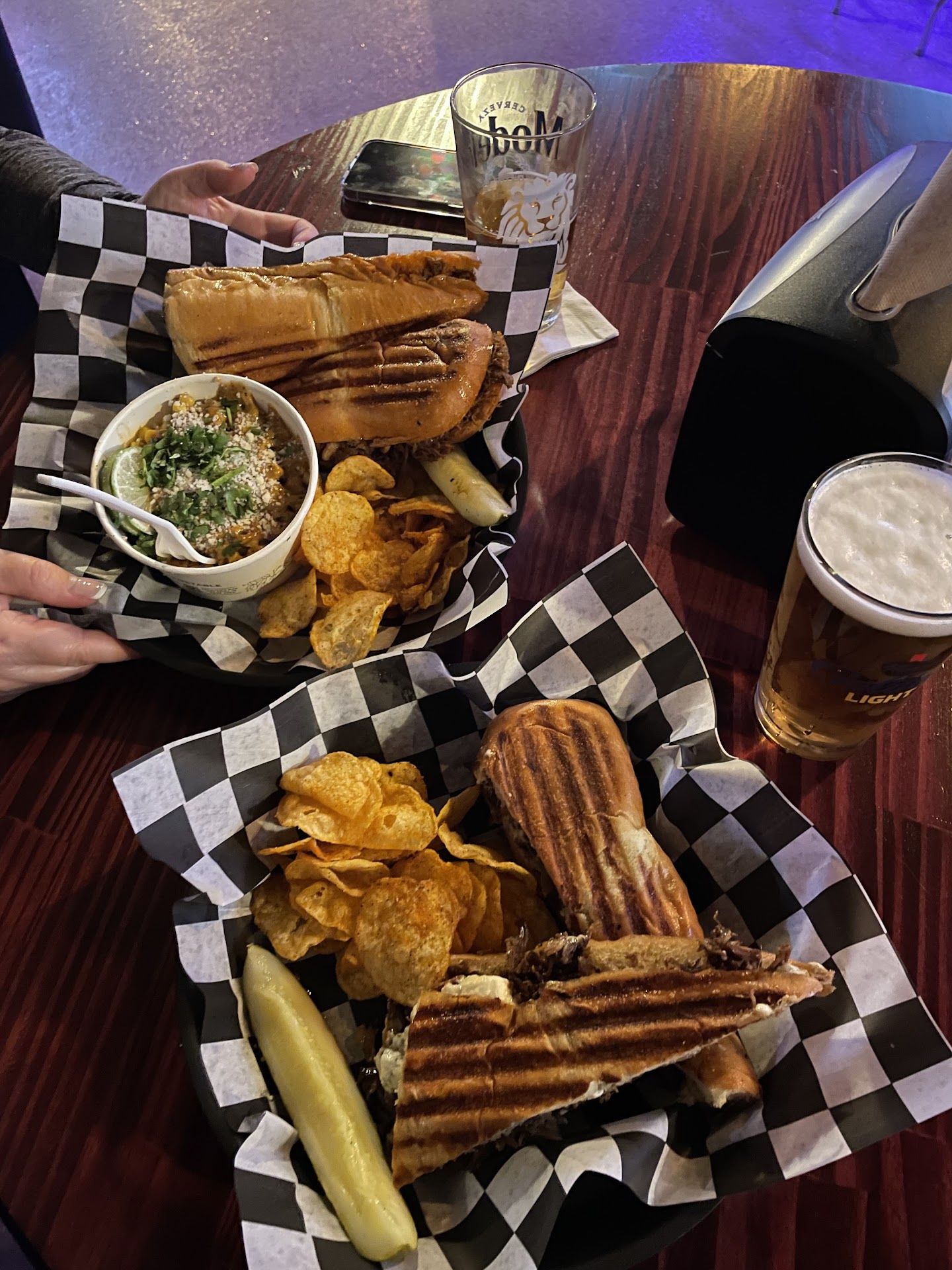 Read moreWe ordered two sandwiches. Beefy Blue and Ropa Vieja. Both were excellent and came with good chips and a pickle spear. The beef was very tender and very flavorful. We also ordered the street corn as a side and it was wonderful! We will be back soon to try other sandwiches, tacos and sides. The atmosphere was nice because you have the choice to sit in the bar or in the side room with high top tables. Nicely decorated and a warm atmosphere. You order for yourself at the bar or the food window and they deliver it to your table. I have no problem with that style of service. The bartender working the night we were there was very friendly and the guy who delivered our food was very friendly too. We will back and we recommend...