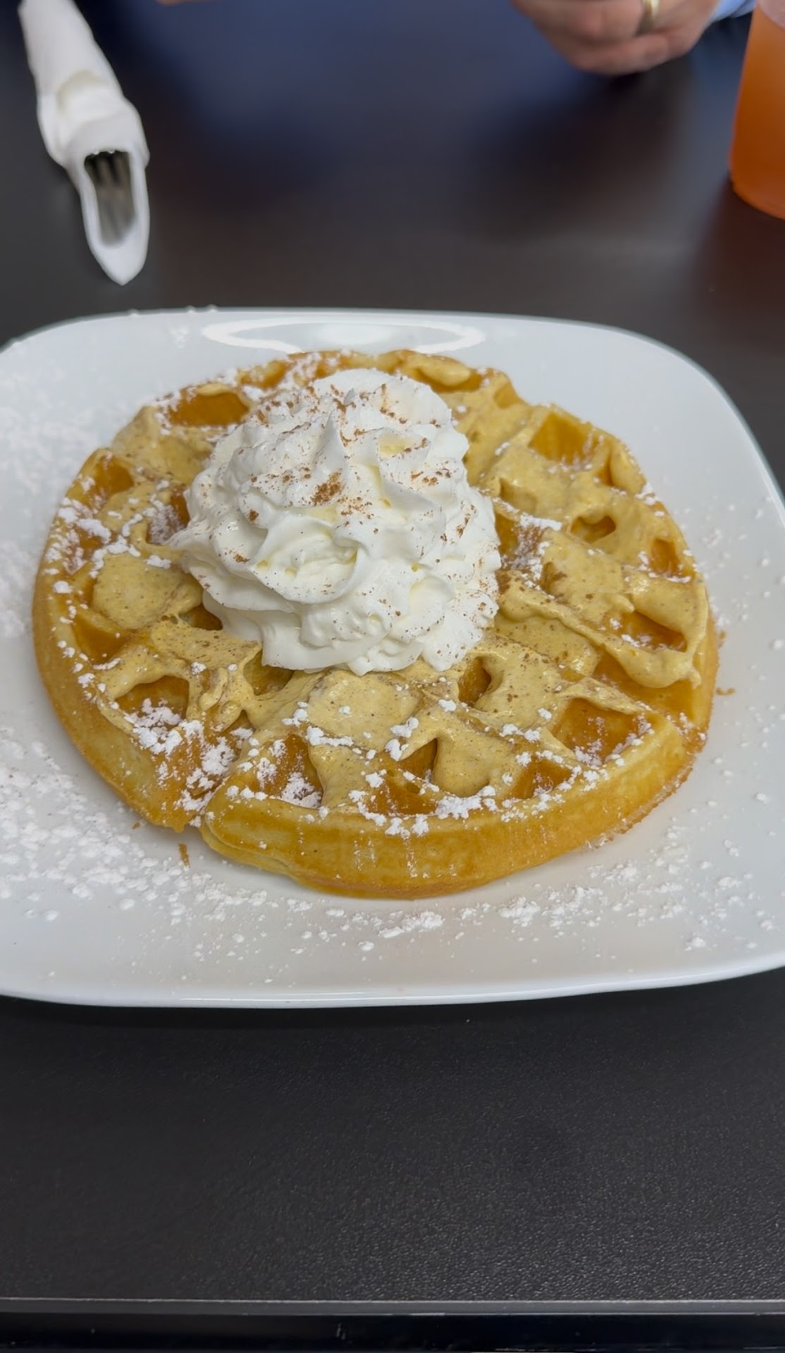 Read moreThe staff, the restaurant, and the atmosphere leave nothing to be desired. The gluten-free and vegan options go far and above all of the other restaurants in the area to be inclusive. The experience was great, but the waffles themselves could have been better. They were fluffy but a bit dry. They lacked some of the ingredients that would take them to the next level. Being a restaurant, I would think the ingredient profile would be a bit more rich. More sugar, vanilla, or brown sugar/maple syrup in the batter? The addition of Belgian sugar pearls would also take them to the next level. They are certainly healthier than the ones I would have expected. The toppings outshine the waffle rather than elevating the star of the show.