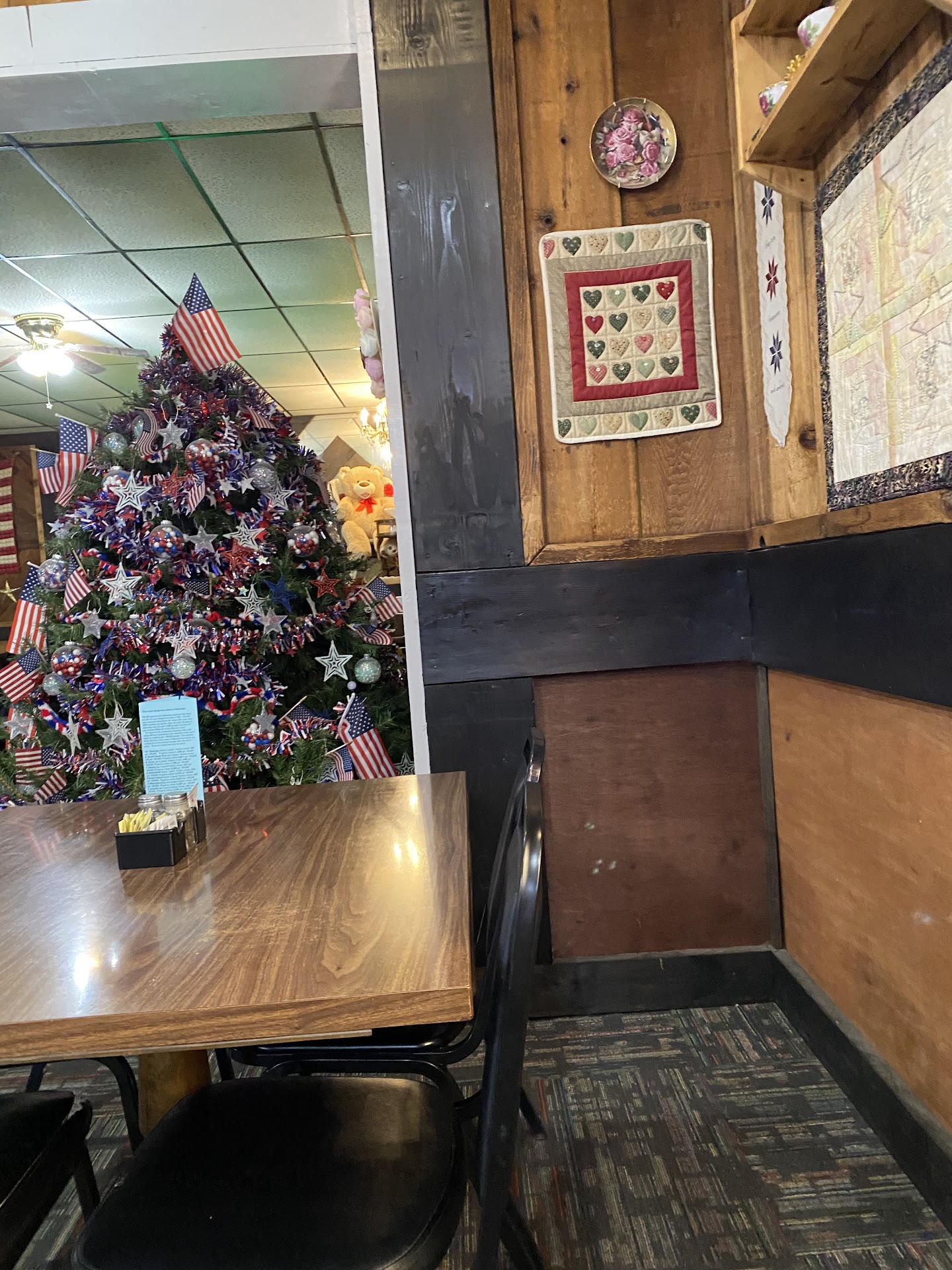Read moreReally good, down home cooking. We came on a Sunday, they had a buffet of fried chicken, meatloaf, mash potatoes, two types of gravy, mixed veggies, salad bar, and rolls. Came with coffee, tea, or water and piece of cake. Owner displays a wonderful tribute to veterans from memorial weekend to labor day weekend. Anyone can send in copies of their vets picture and she displays it and either stores it or sends it back to you ( depending on your desires). Owner gifted us with little crosses...