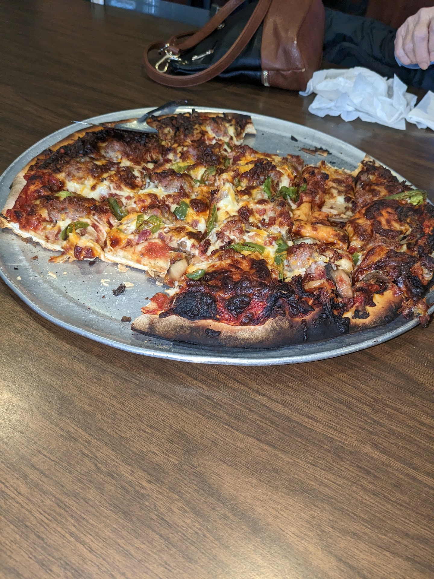First time visiting VIP. The place presented clean and orderly. Our beverages were ordered and delivered promptly. A few minutes later our order was taken. We ordered two pies that were recommended to us by others who had been there. ( This was our first visit) It seemed to take an exceedingly long time for our pizzas to arrive. So much so that my wife got up to enquire. " They just came out of the oven" was the response. They were brought to our table, no eye contact was made. Both pies were over cooked, one to the point of blackness. Our server seemed to realize that this was unacceptable. I got up with the burnt, black pie and began to walk it to the kitchen. She immediately offered to re do the pizza. We would surely have understood if she came out and said that the pies were both overcooked and couldn't be served... But that's not the way it went down. The worst of the two was redone and delivered promptly. And I will say it was quite good. To the servers credit, she presented the bill with a tiny discount. 5 bucks. We paid the bill, offered a reasonable cash tip, and left. Underwhelmed . It is unlikely that we will " darken" their doorstep again. Sammy's...