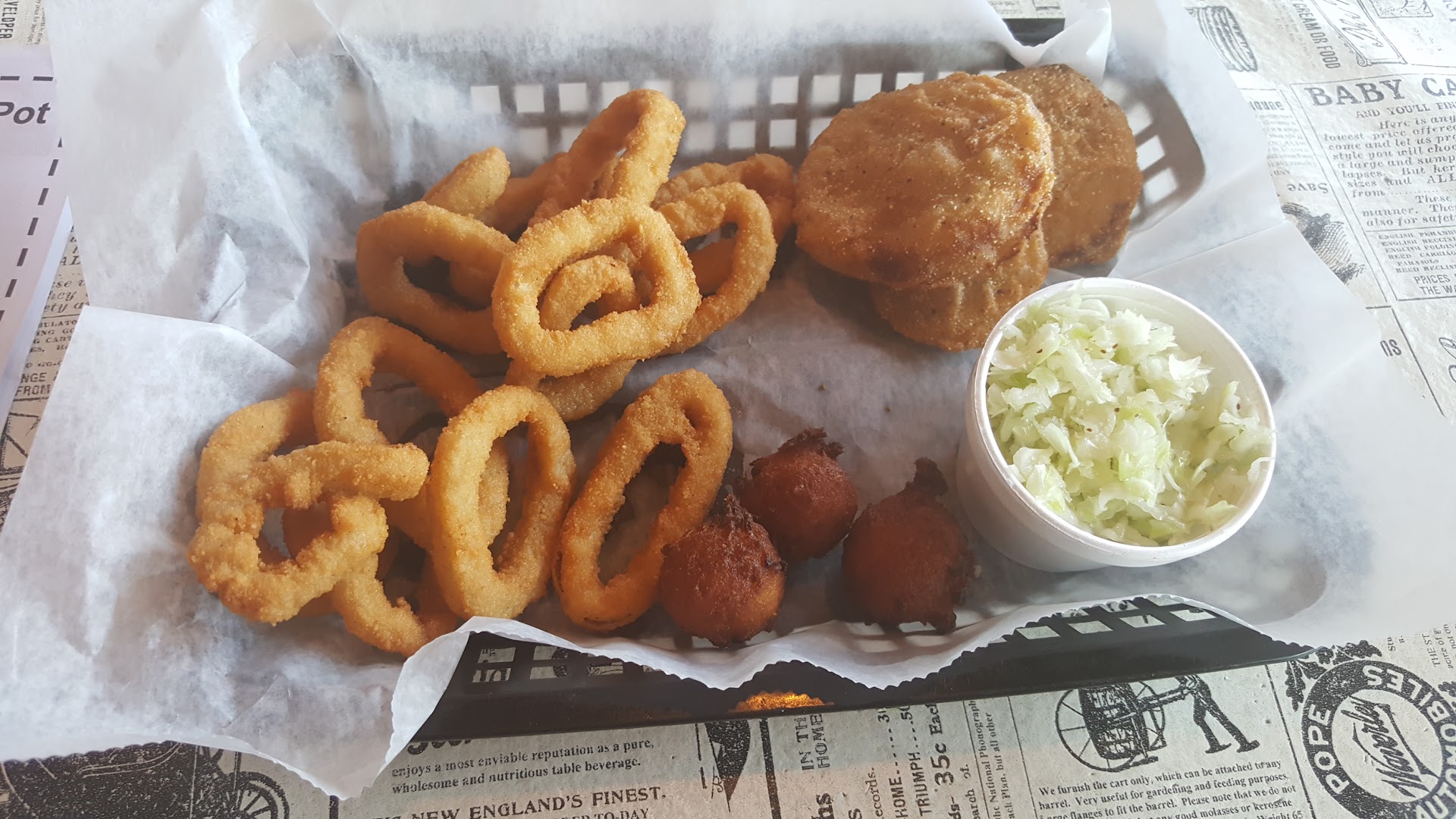 This was definitely our worst experience on the island. We were told it was a 45 minute wait, so we did. An hour later we were seated. It wasn't that busy inside. We saw several empty tables but were happy to have our table. We ordered appetizers and they came relatively quickly. We had hush puppies that were dry and overcooked and cheesy crab fries with very little crab and some unknown cheese like spread.